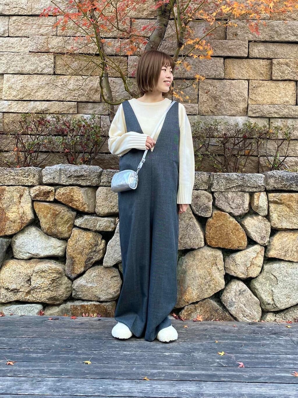Vネックオールインワンは