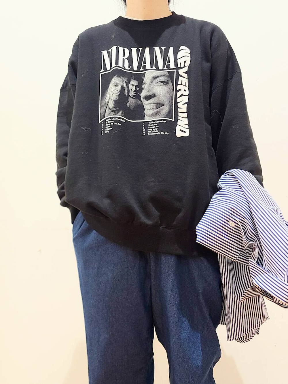 フロントプリントがインパクトのあるオーバーサイズスウェット。