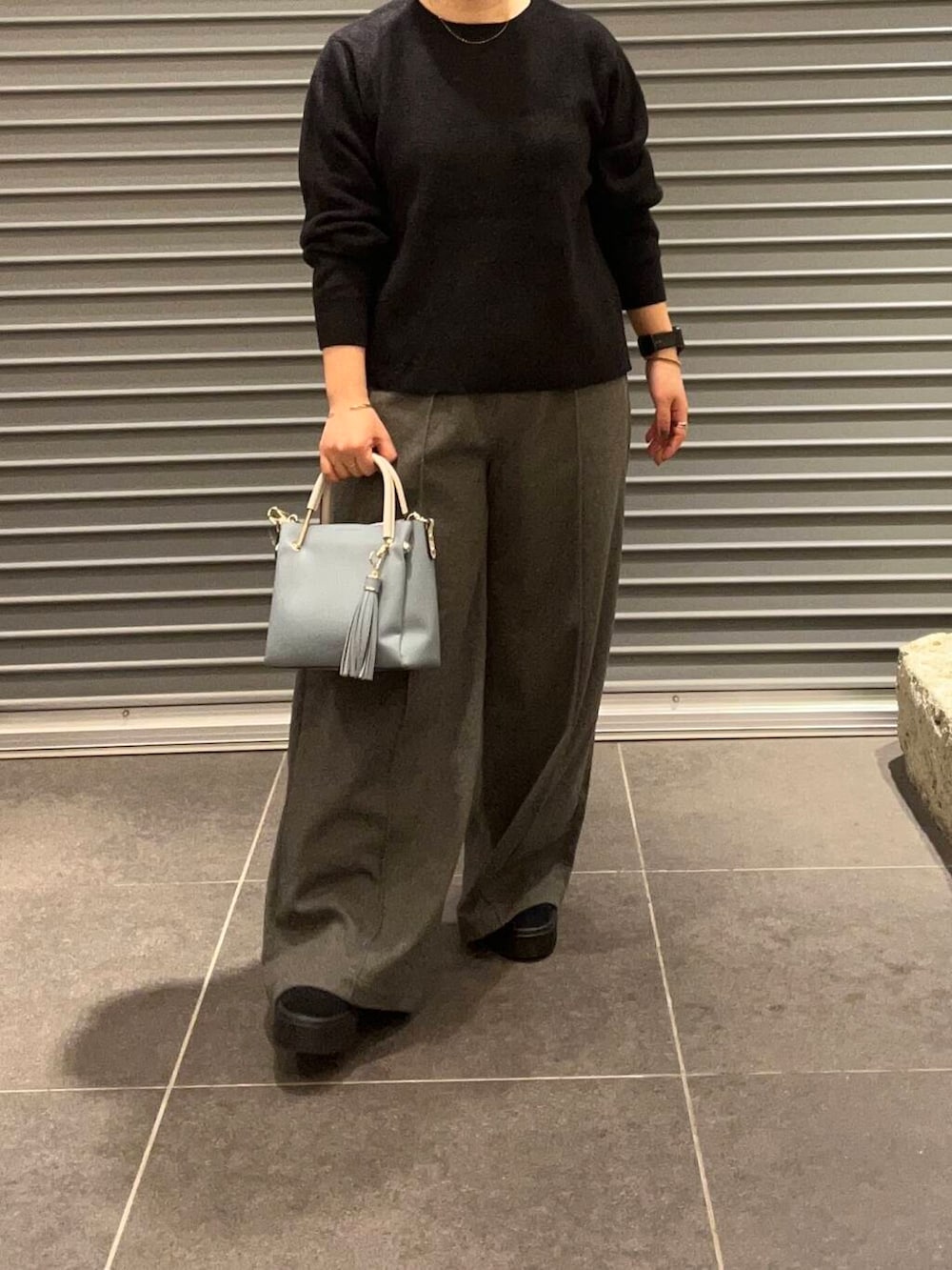 パンツは暖かみのある素材でとても履きやすいです。シルエットはワイドで着丈は150cmの私だと5cmくらい丈詰めした方が良さそうでした!