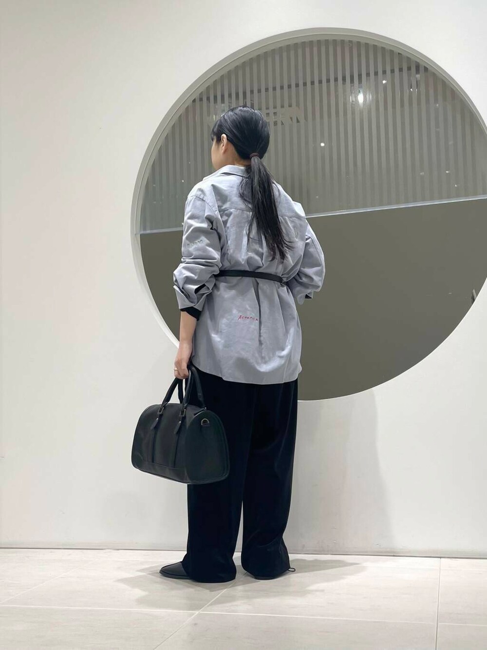 裾が絞れるようになっているので、どんな身長の方にも着て頂きやすいです。ウエストから丸みがあって裾はすっきりしているのでダボっと見えすぎず体型カバーも叶う美シルエットです✨