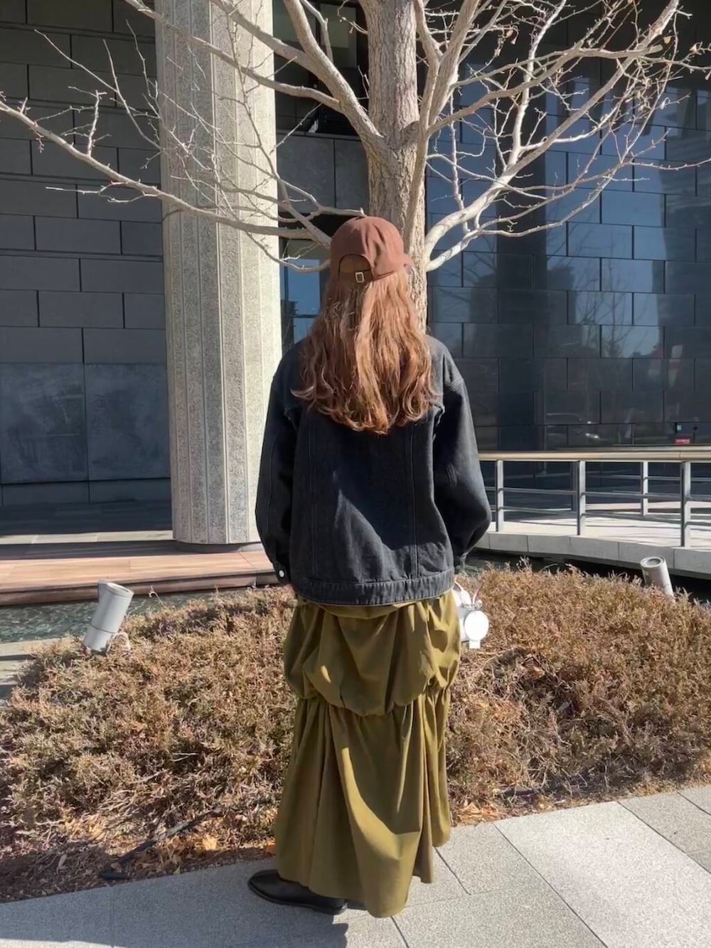 トレンドのバルーンのデザイン性があるスカートを合わせるとおしゃれ見え抜群です!!