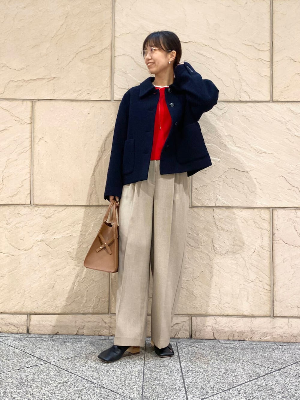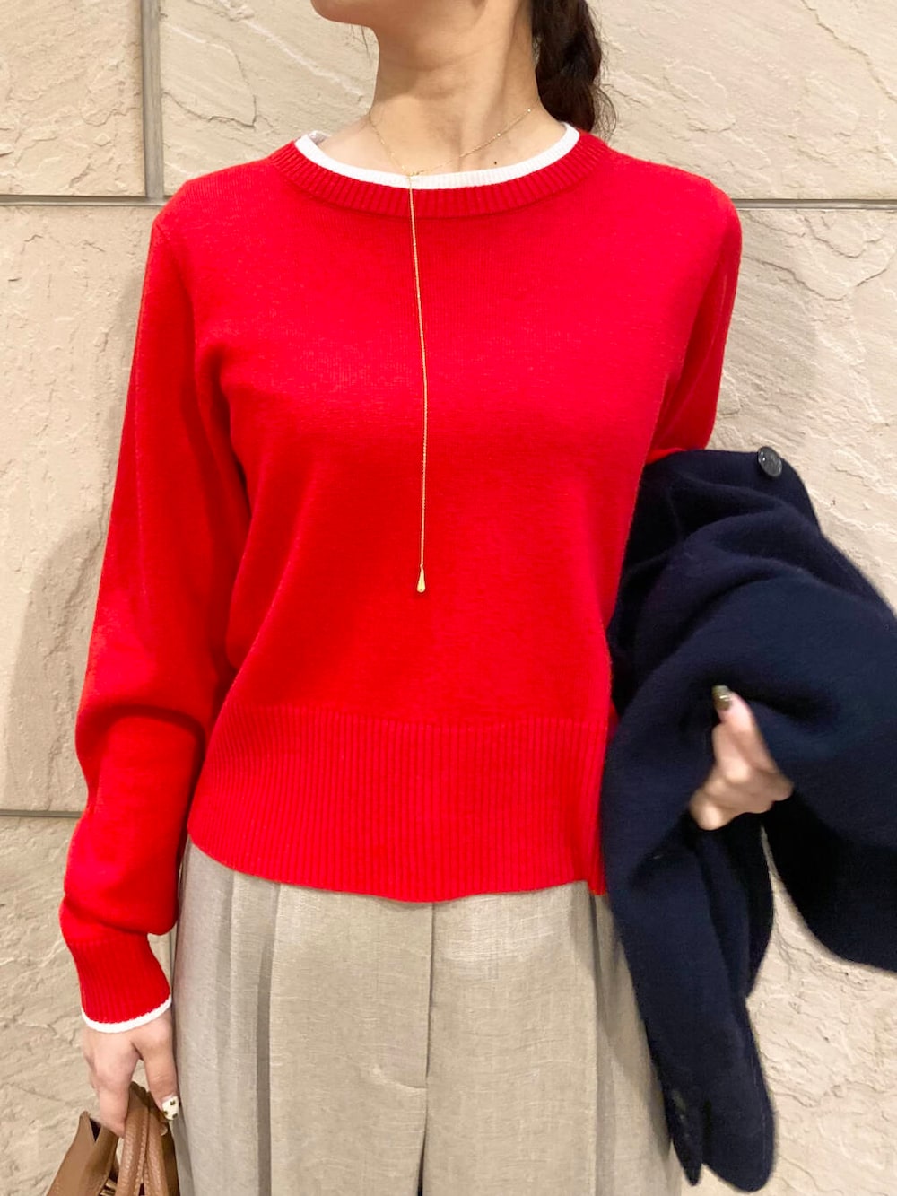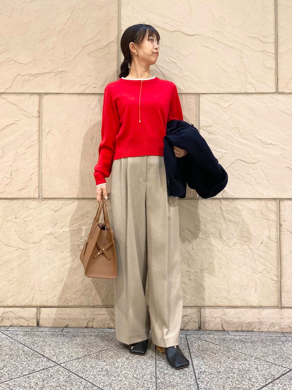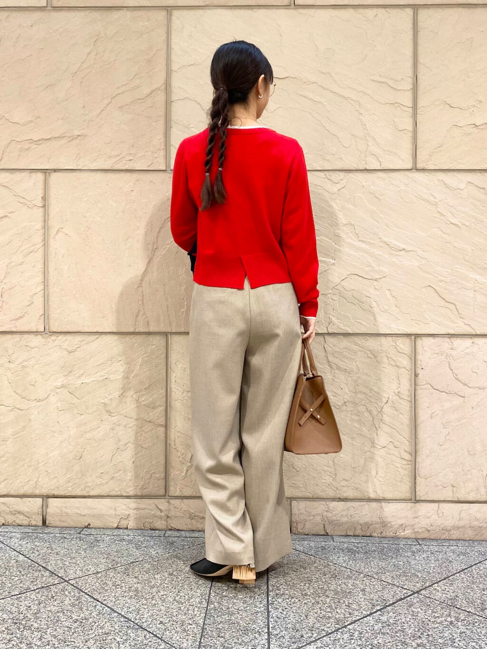 赤ニットで気分が上がる大人カジュアルコーデ♦️