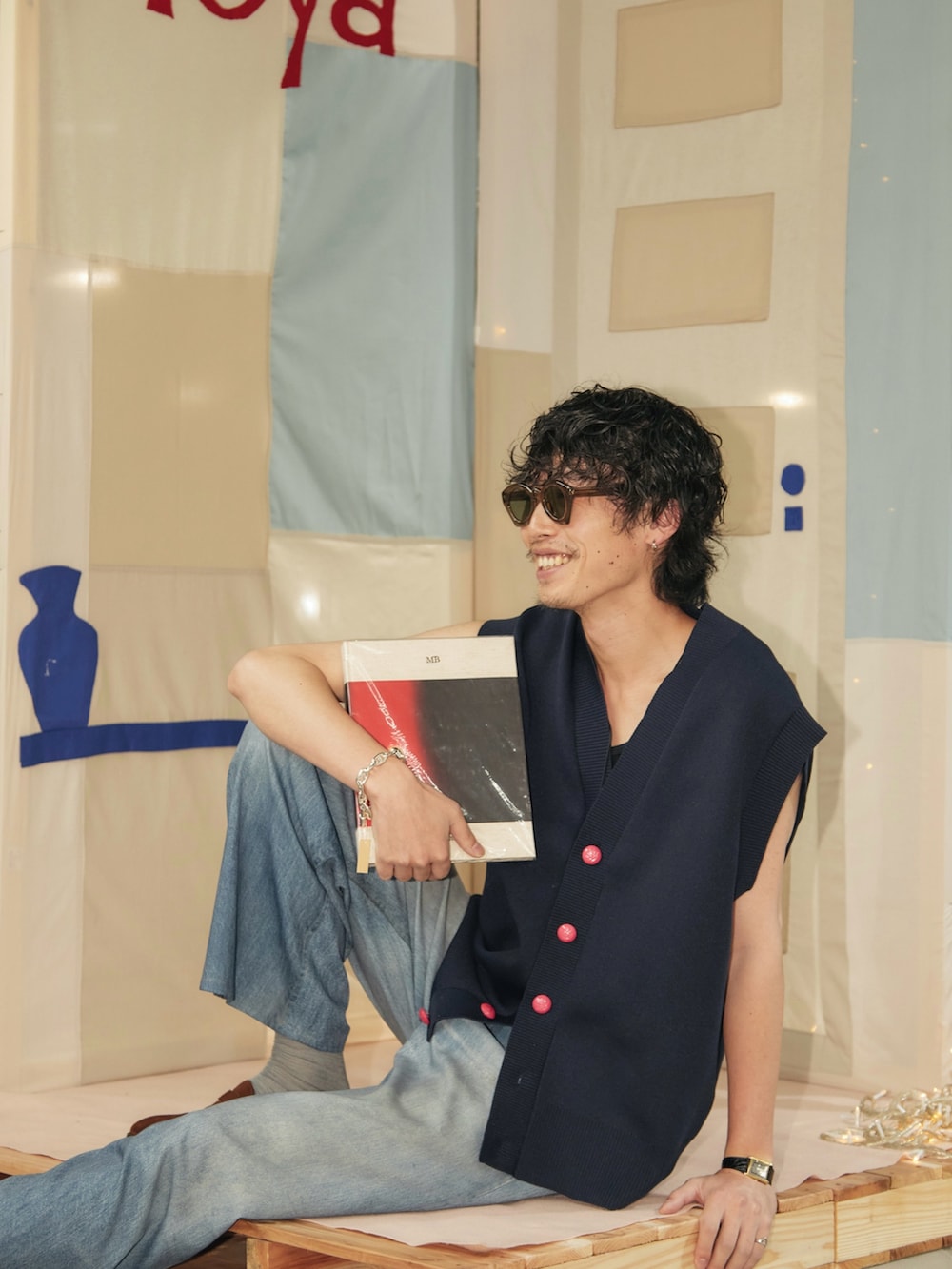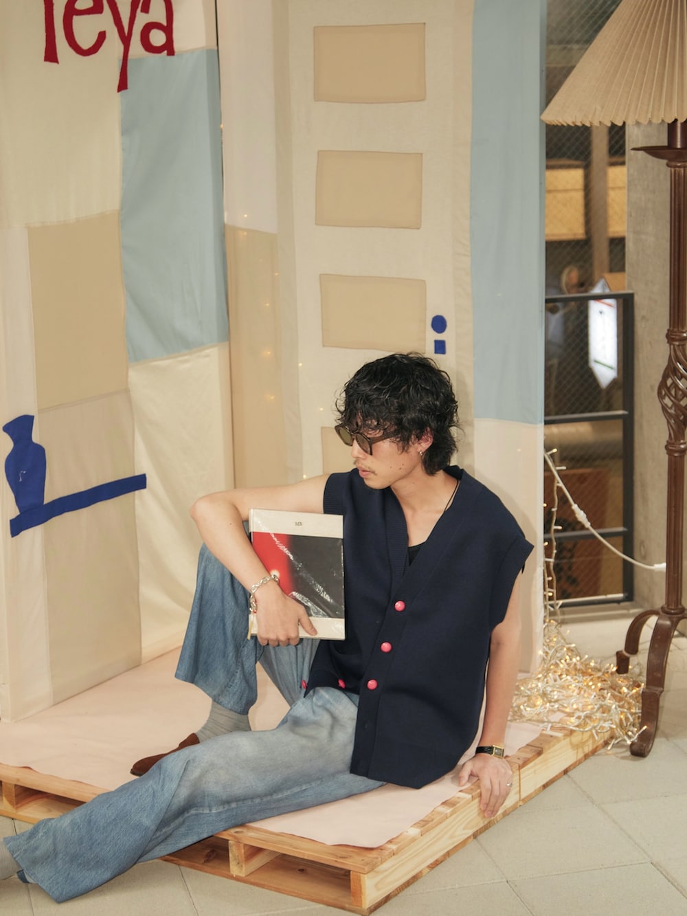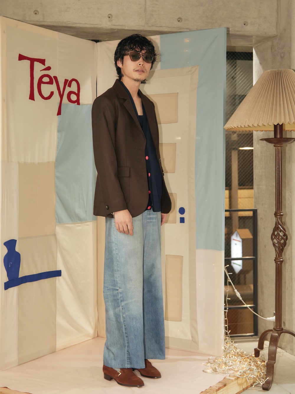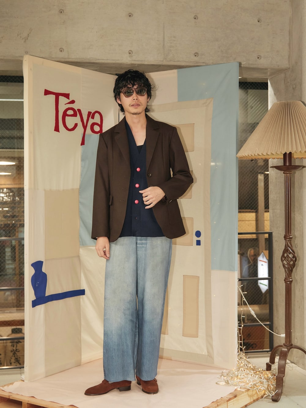 構築的なジャケットにプリントデニム。