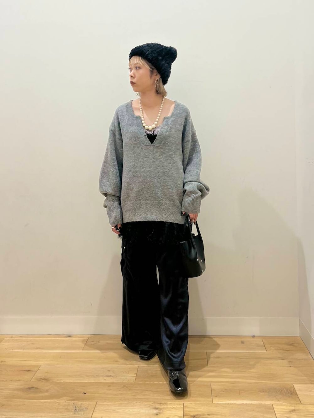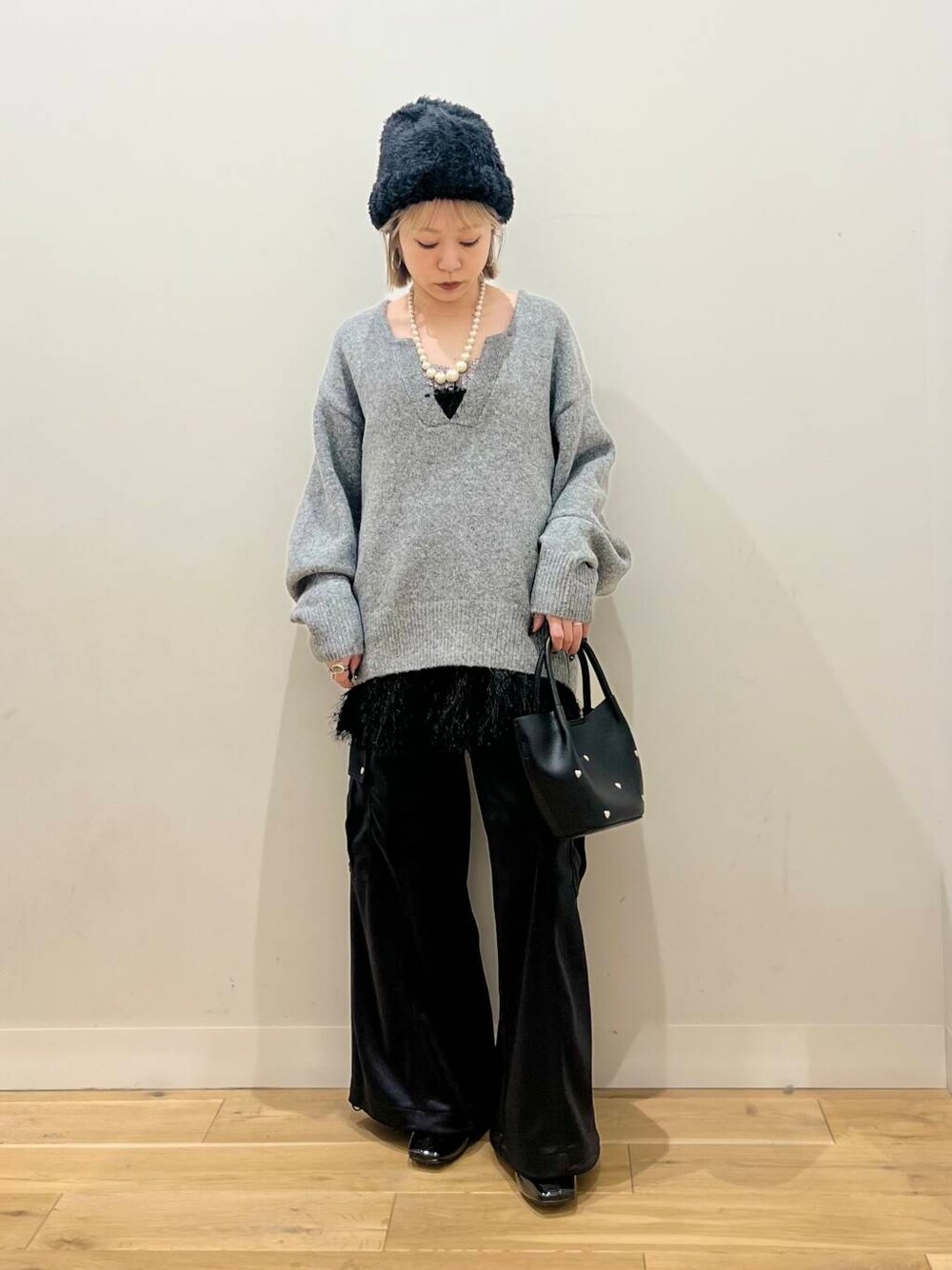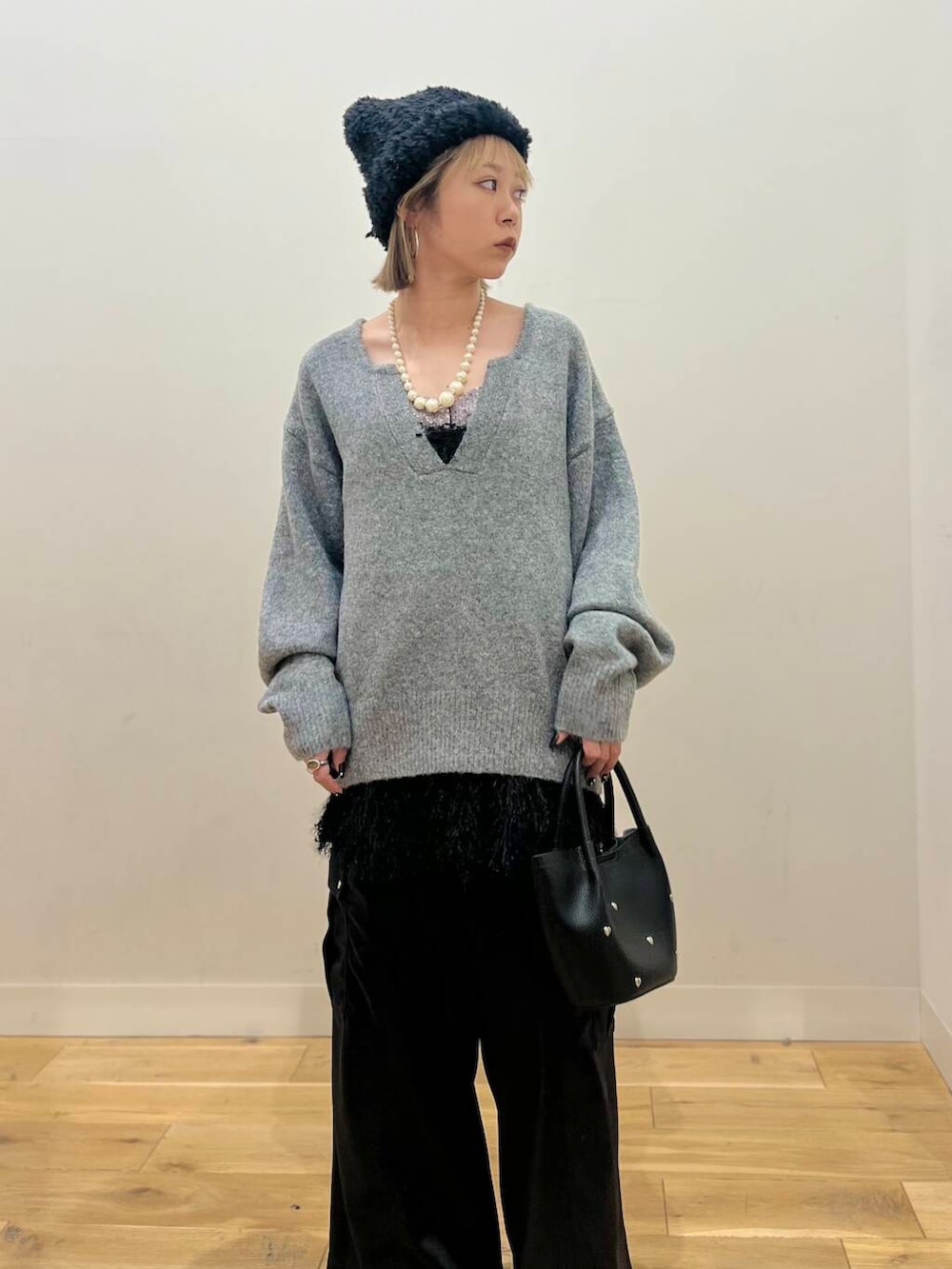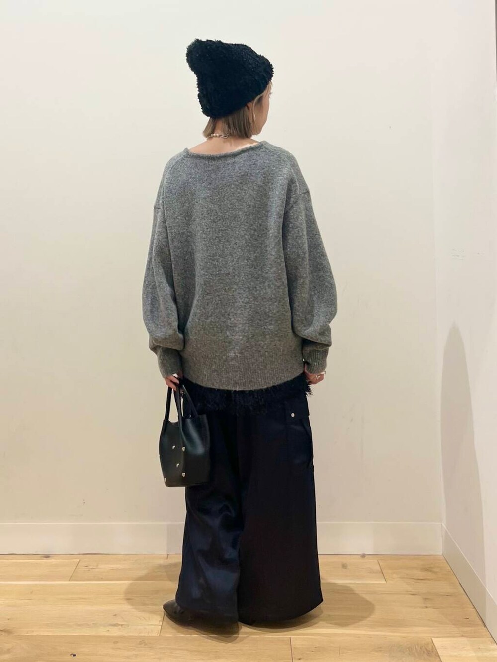 ニットはボリューミーながらもしっかりキーネックがスッキリ見せてくれてシルエットが可愛いです🫶🏼