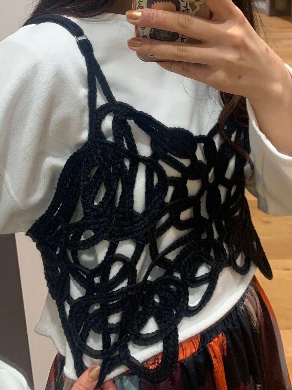 とても可愛いビスチェはウエスト周りがリボンで調節できるので比較的厚手のアイテムの上からも合わせやすいと思います!