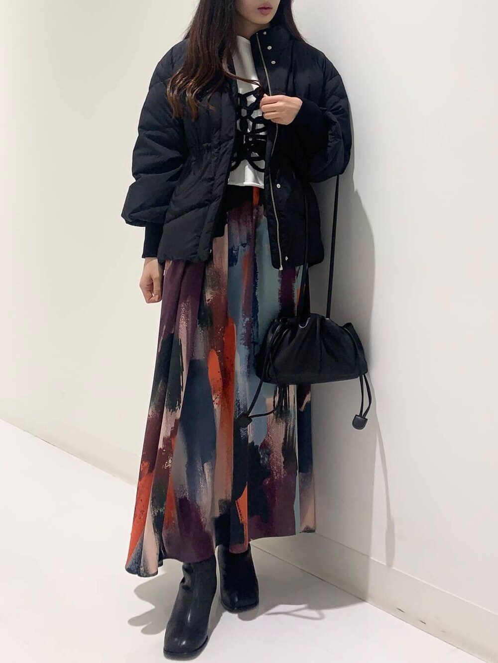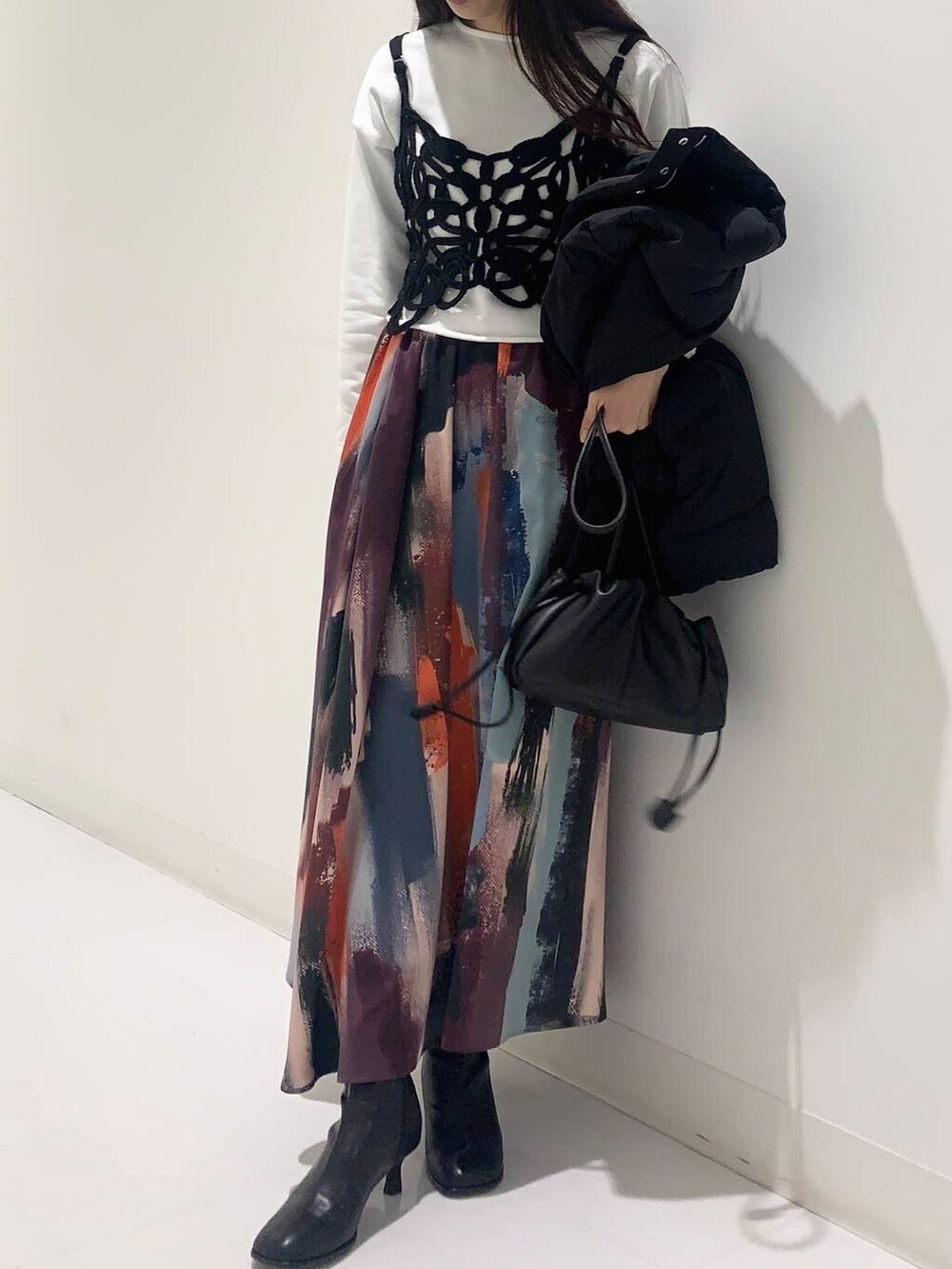コーディネートのポイントになるスカートはウエストゴムで履きやすかったです!さらに紐があるのでウエスト調節できるのもよい点でした◎