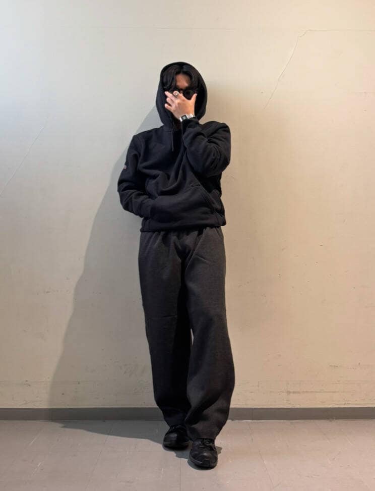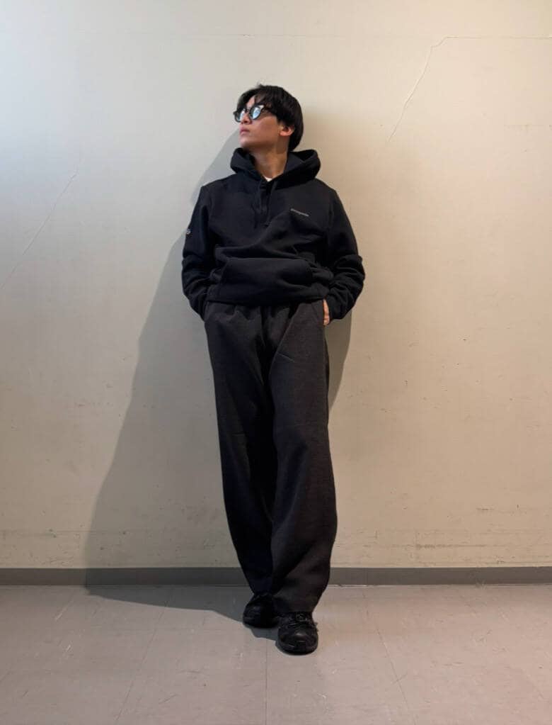 今回のパンツはFORK &SPOONのイージーパンツを着用しました!柔らかい生地の履きやすさ、ワイドなスラックスという形でフーディーとの相性が抜群でした!