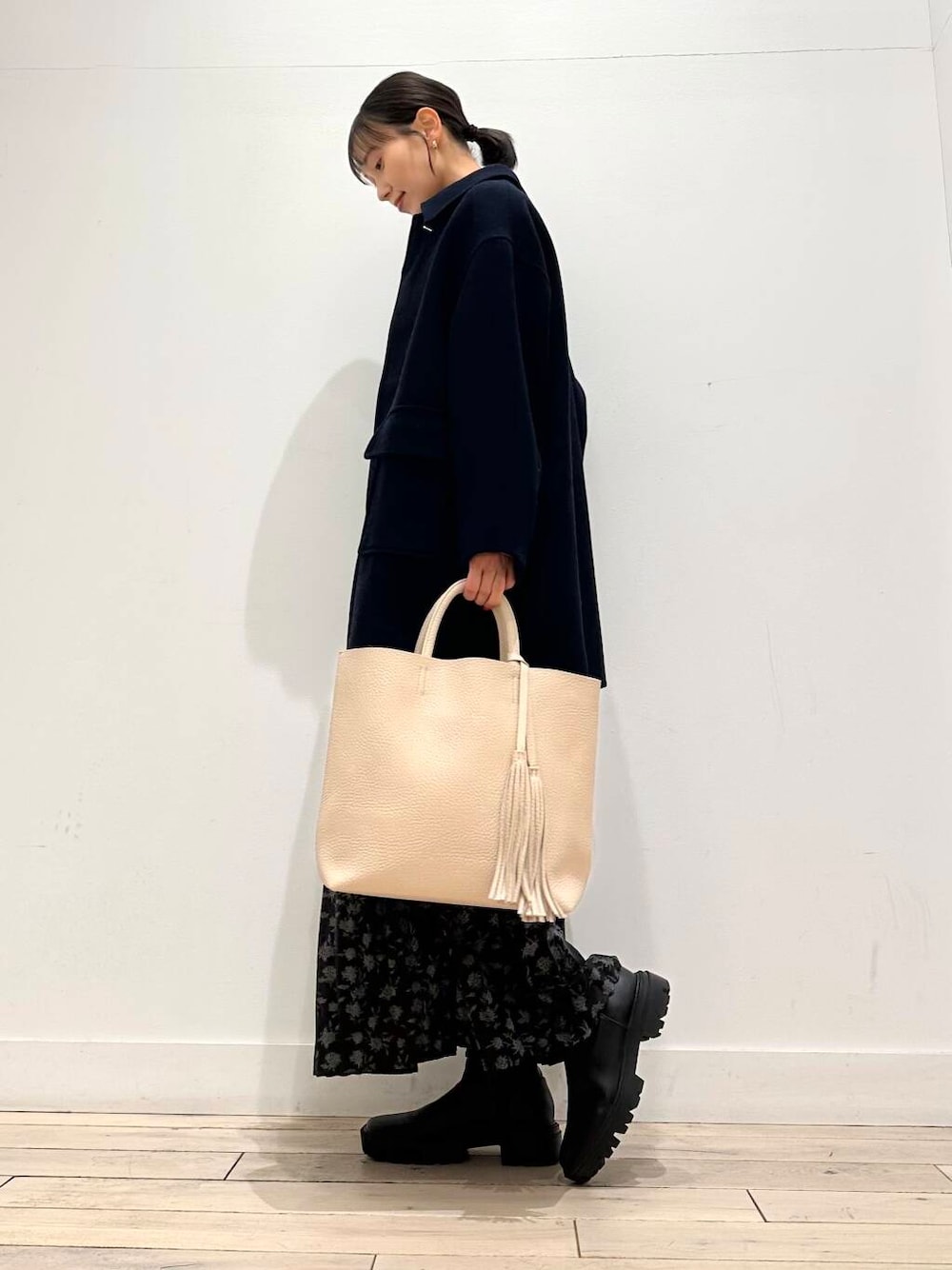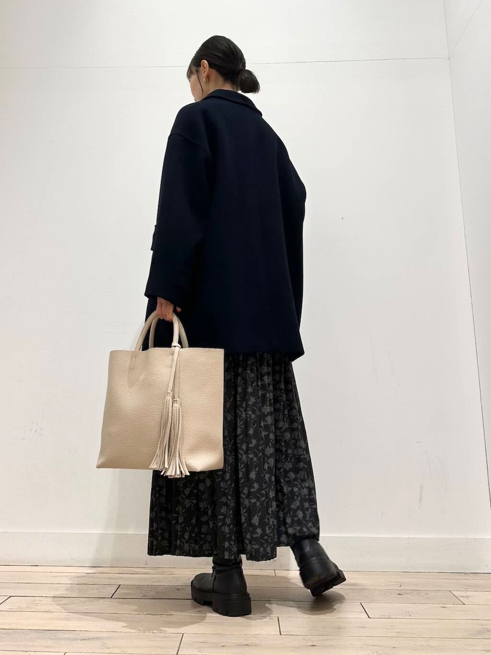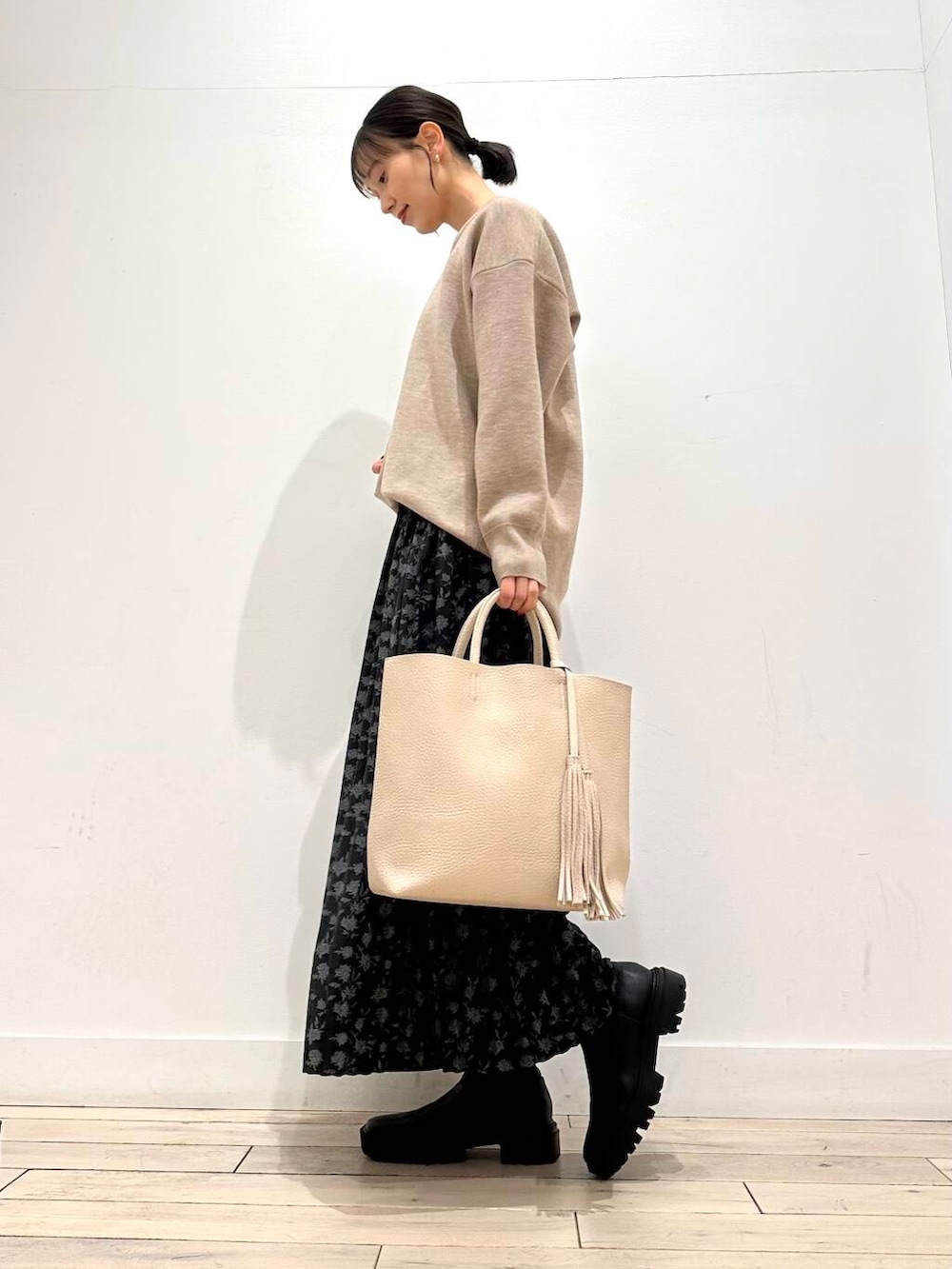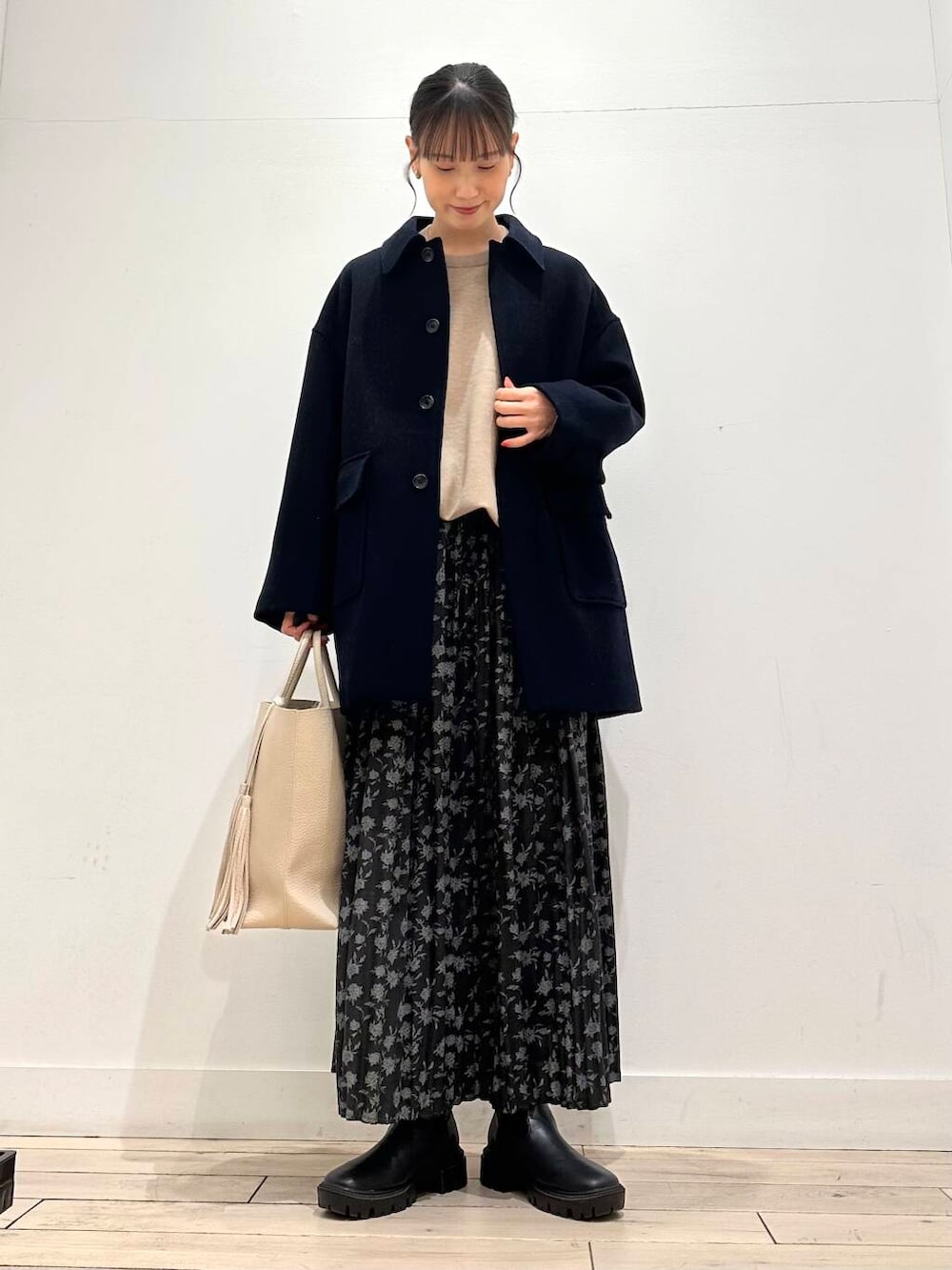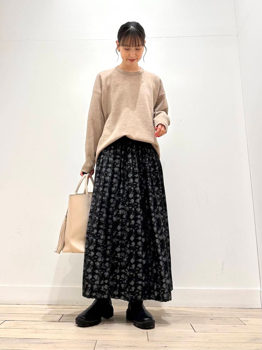 人気のフラワープリントプリーツスカートは、さらっとした生地感なので、秋冬春と3シーズン使っていただけます🙆♀️