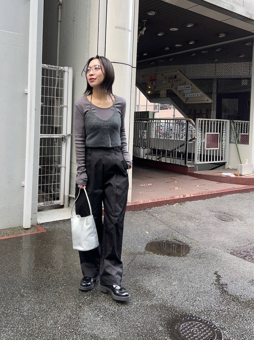 メタリックバケットバッグ