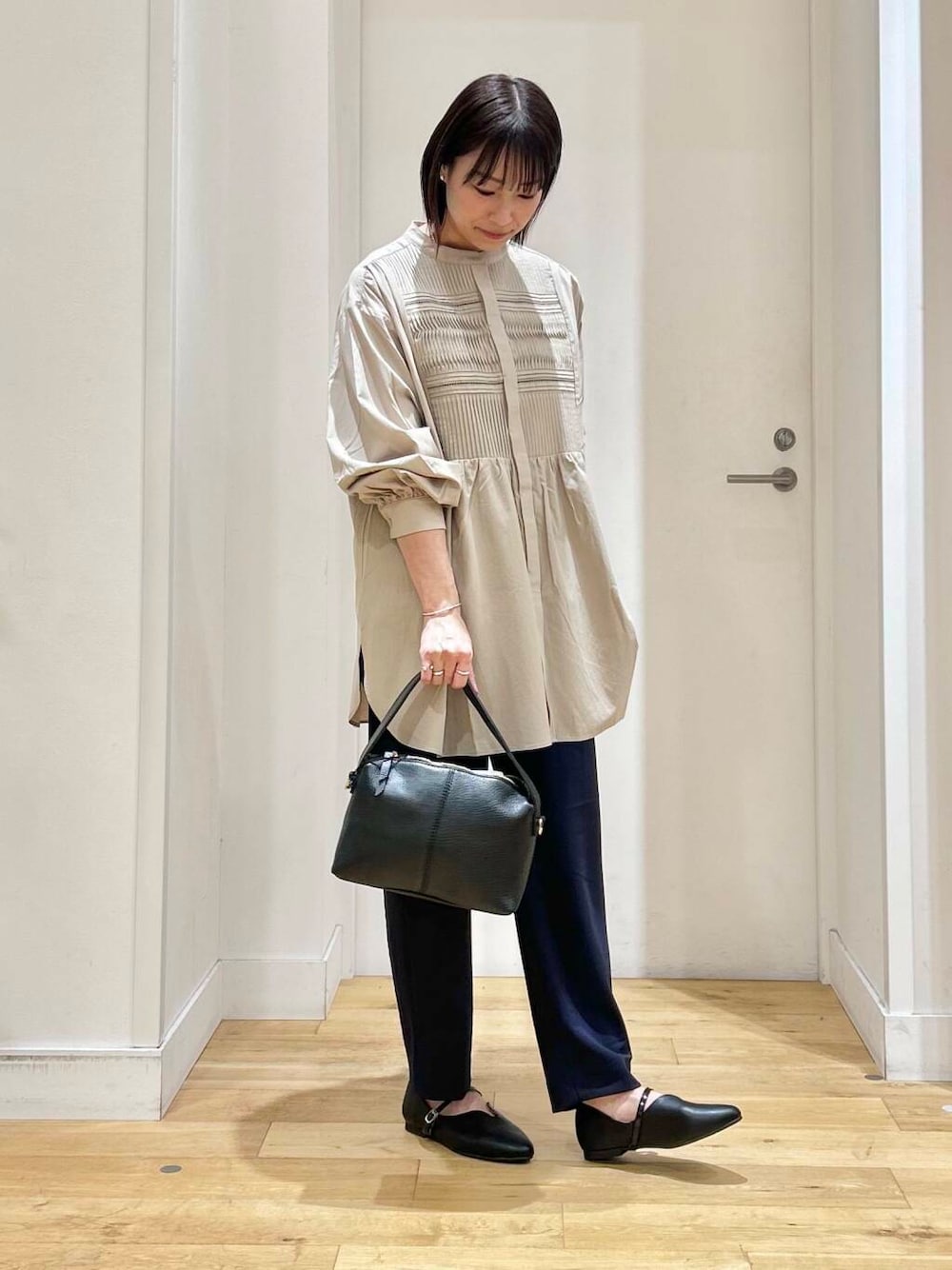 パンツは、テーパードのスッキリしたシルエットでスタイル良く見せてくれます!