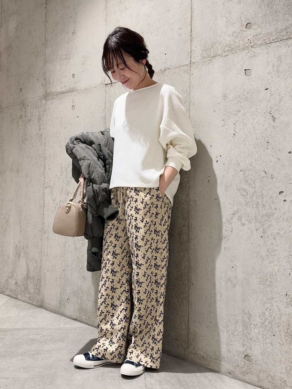 今回は、柄のパンツをアクセントにした、大人カジュアルコーディネート。