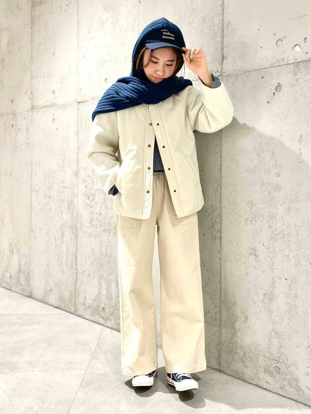 ネイビーは、黒よりも軽く見えて親しみやすい雰囲気が出せるので、真冬コーデからちょっとでも抜け出したいって方にはおすすめです!