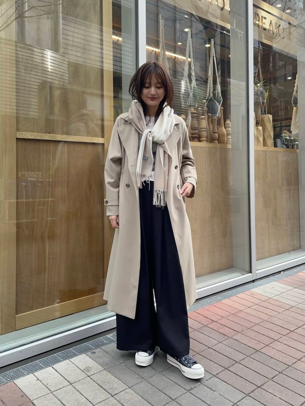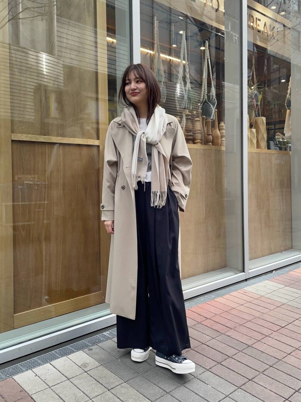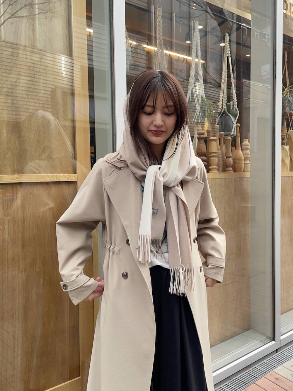 人気のトレンチコートはフリーサイズですがウエストを絞れるのですっきり着やすいです😆