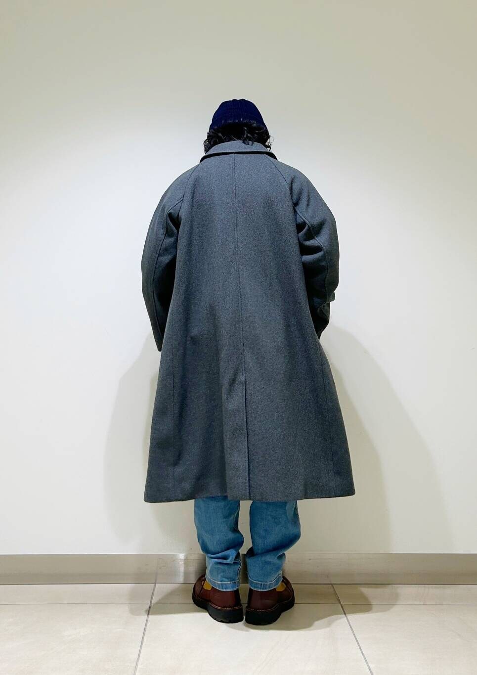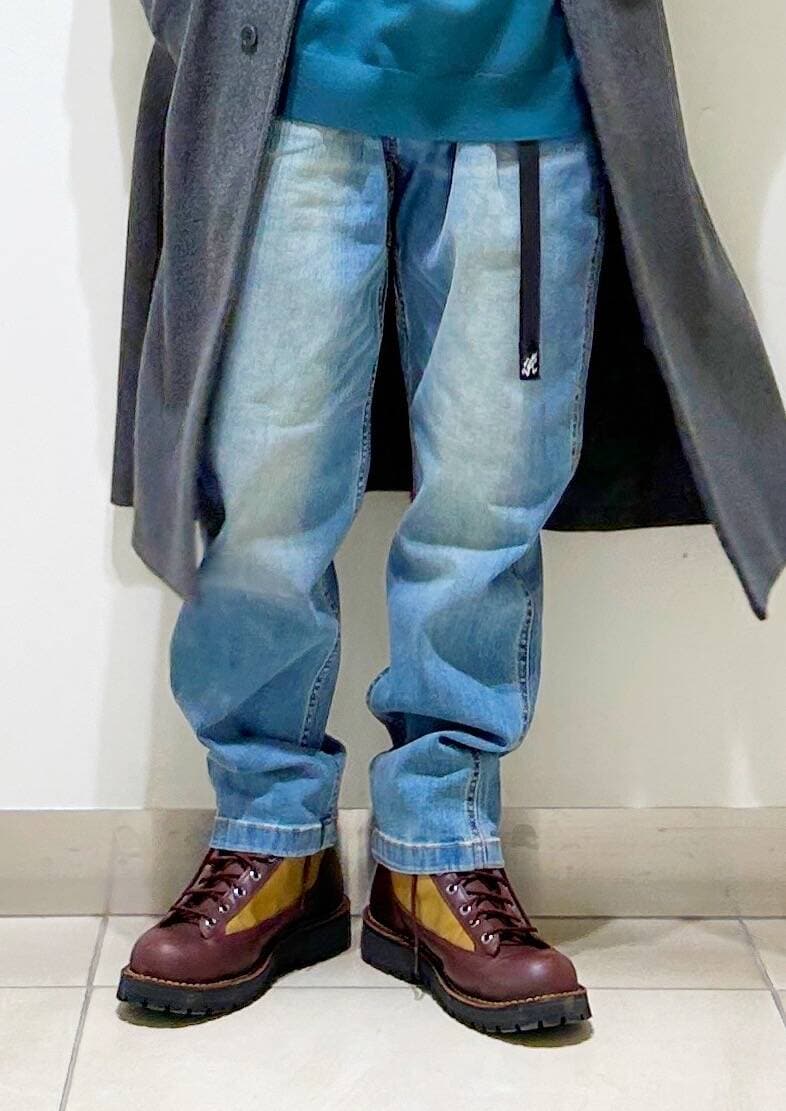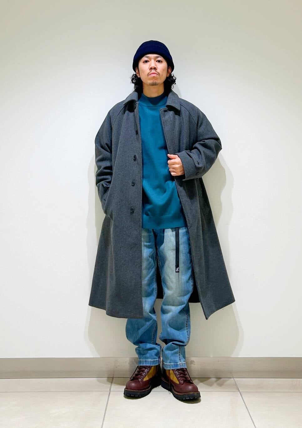 今回はニットメルトンコートとグラミチ別注デニムパンツを使用したコーディネート。