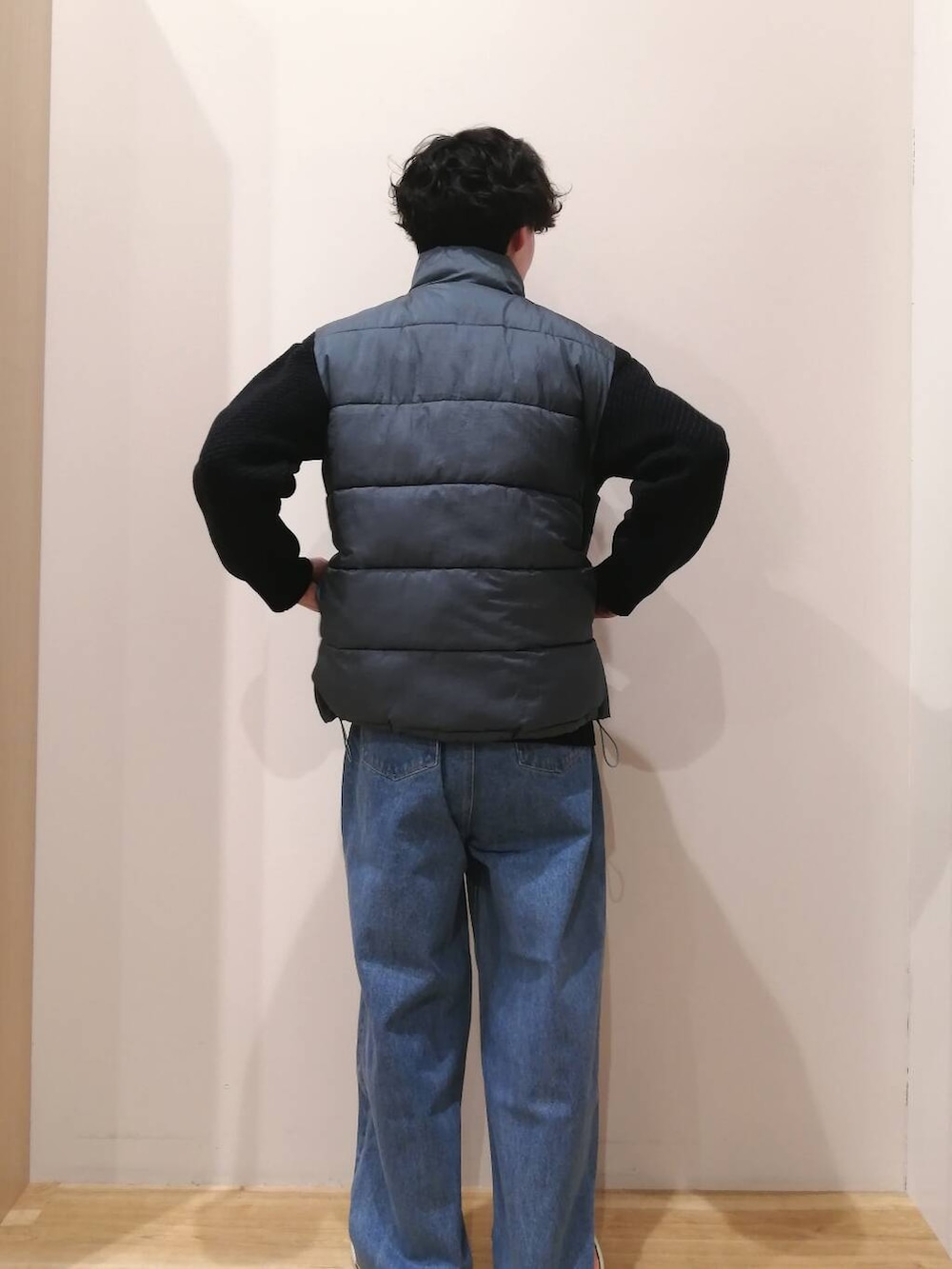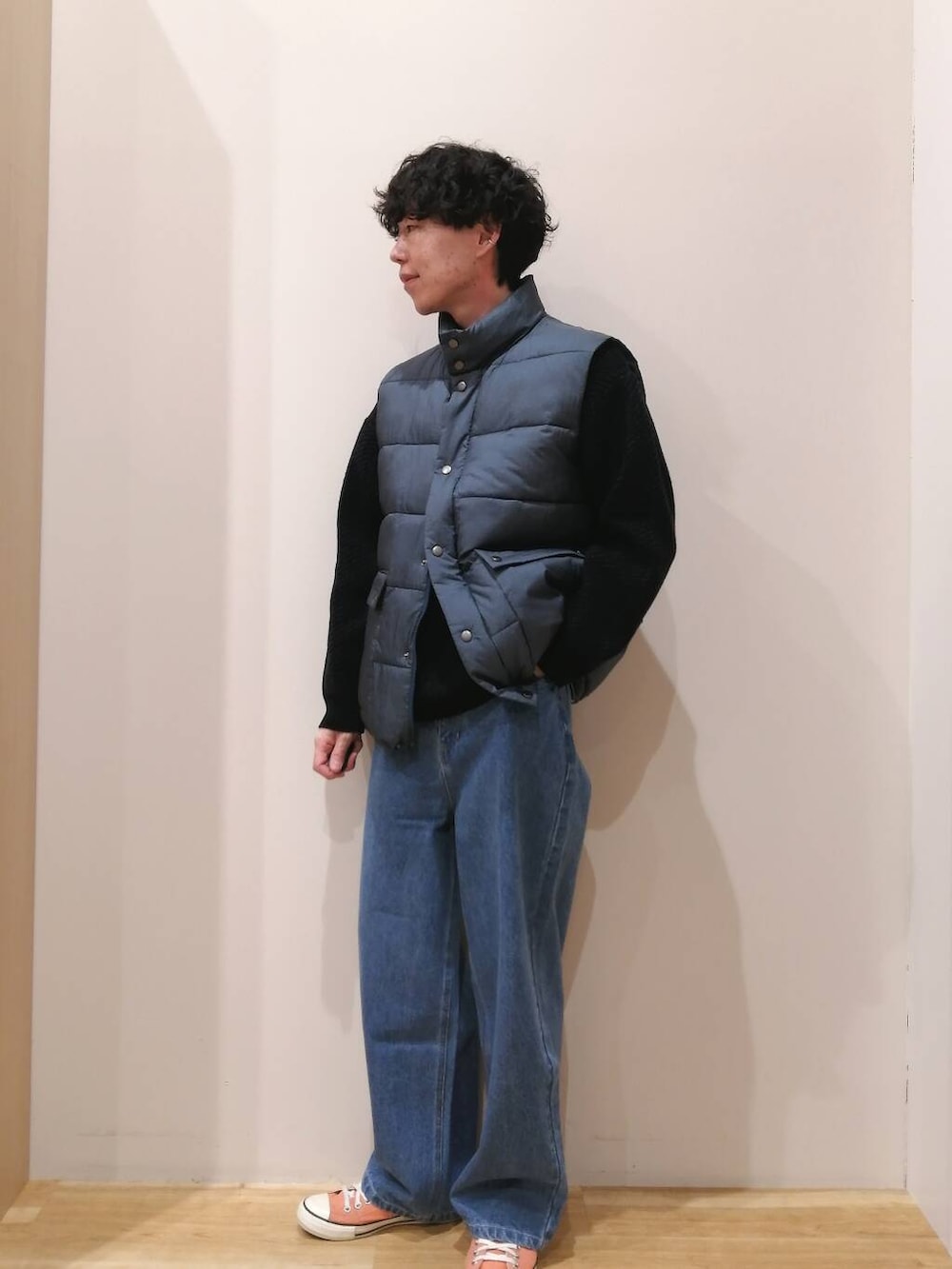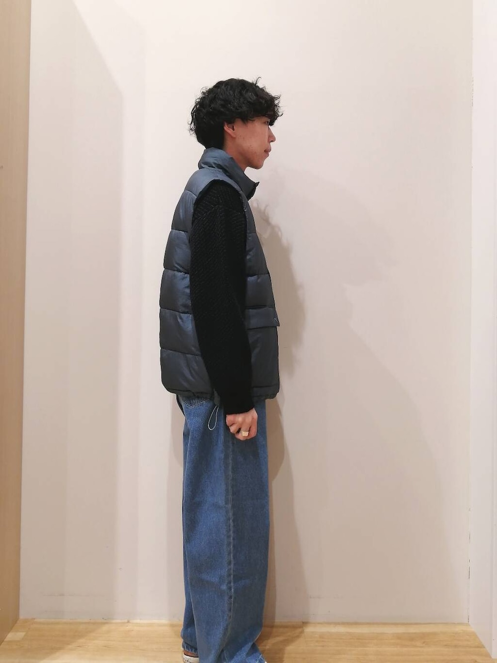 ベストとニットはMサイズ、パンツはLサイズを着用しております。