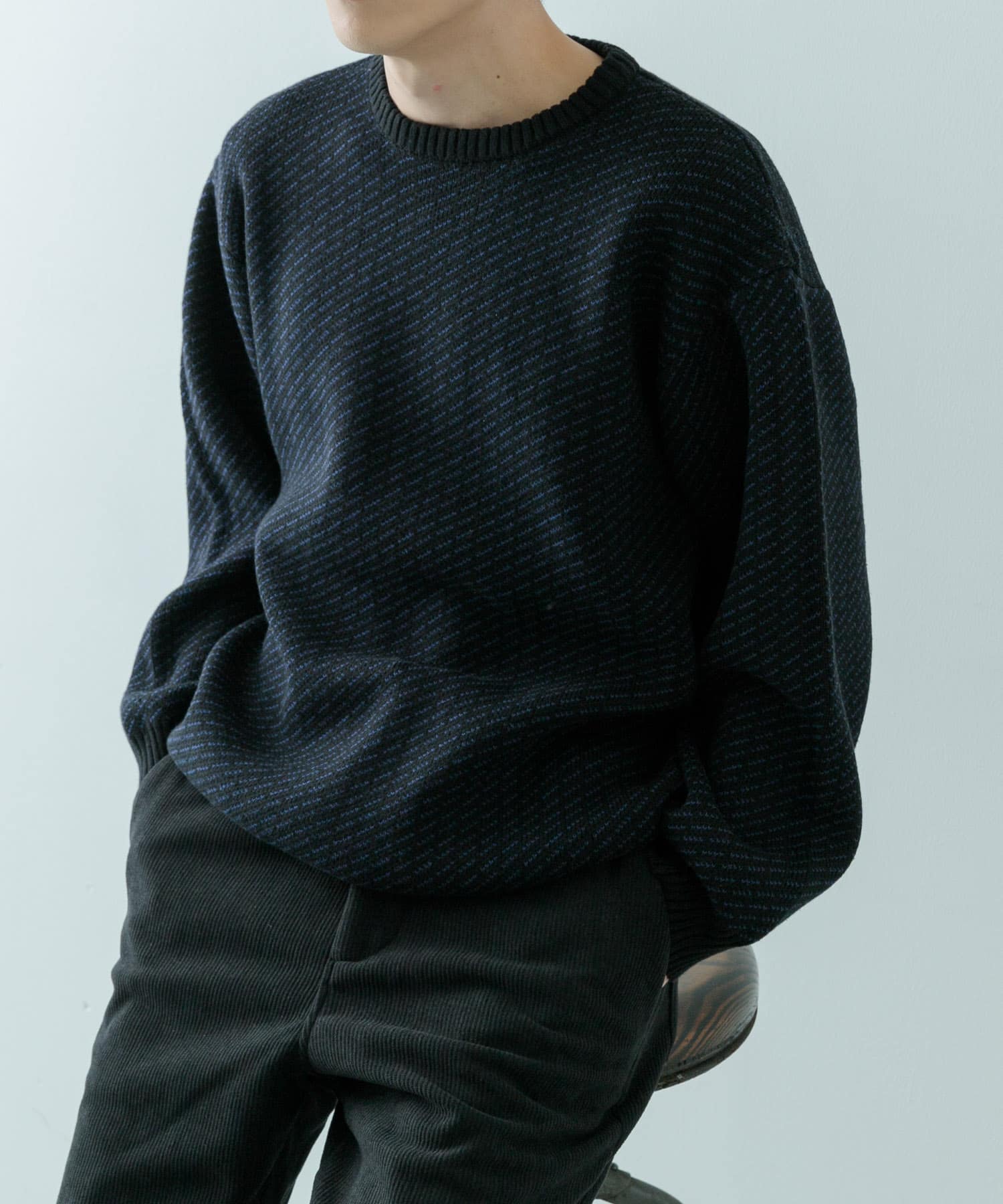 ニットはバーズアイ柄がアクセントになるゆったりサイズのアイテムになります。