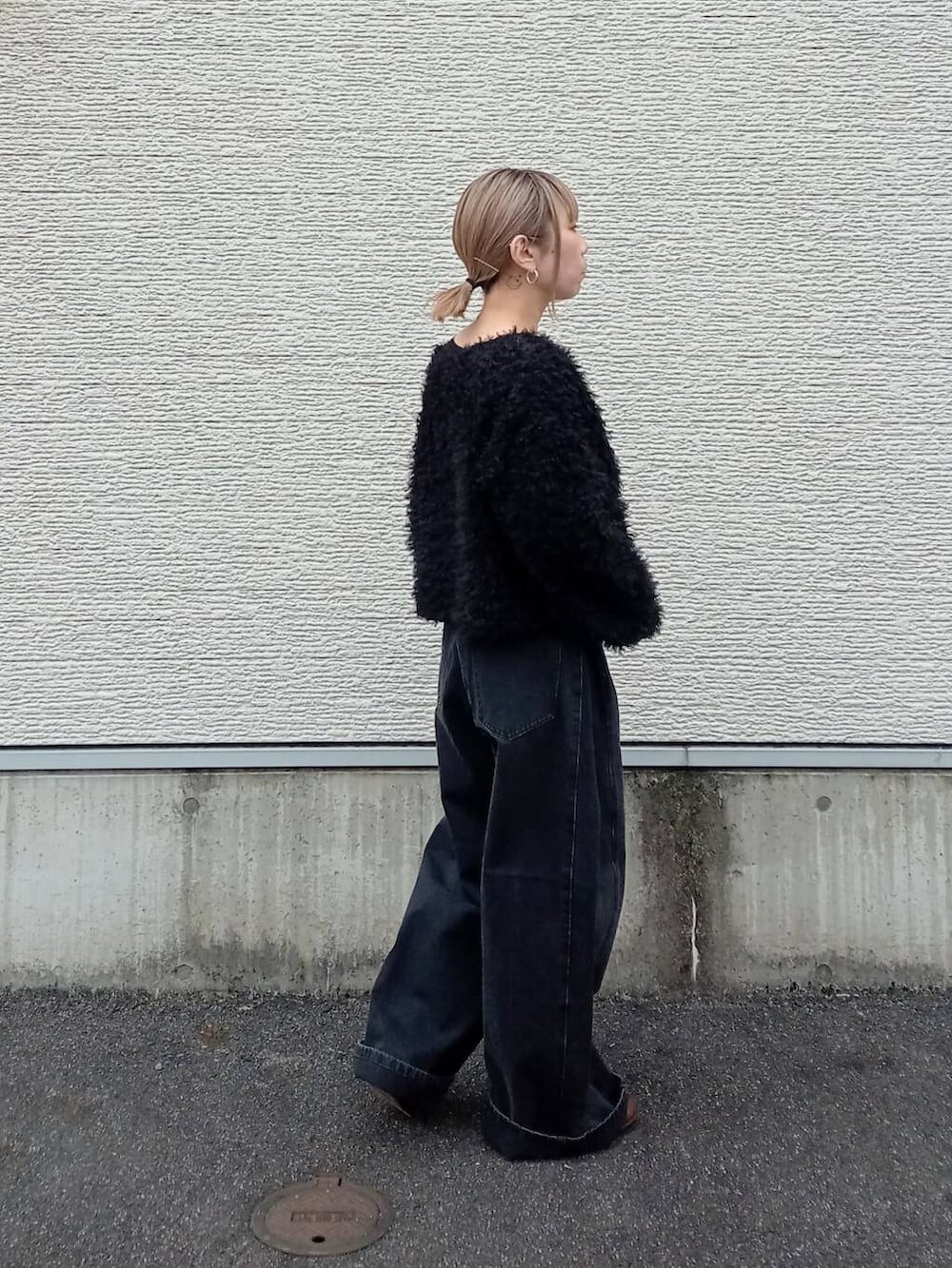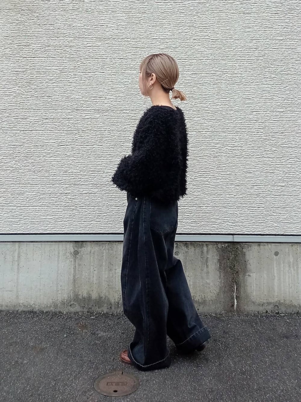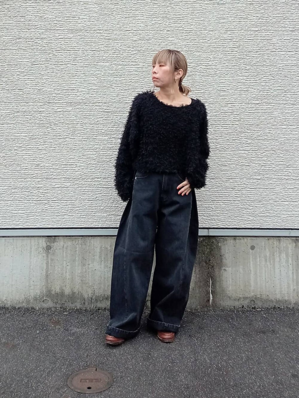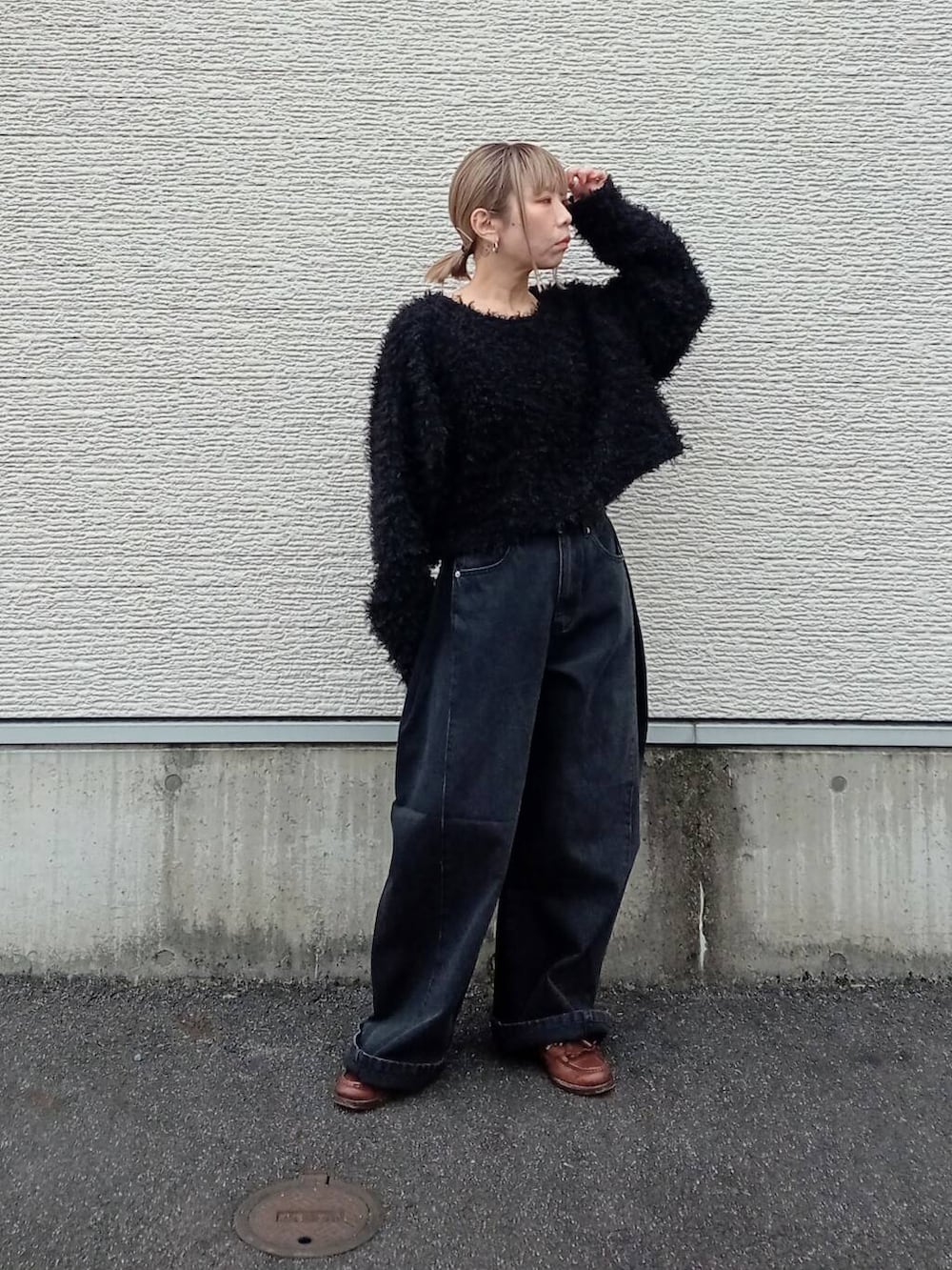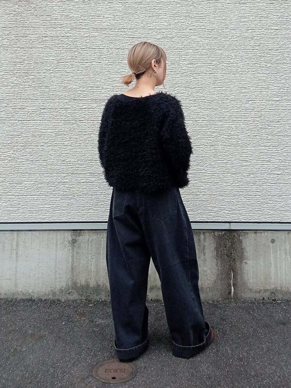 サイドにタックの入ったデニムは大分ワイドなシルエットです。