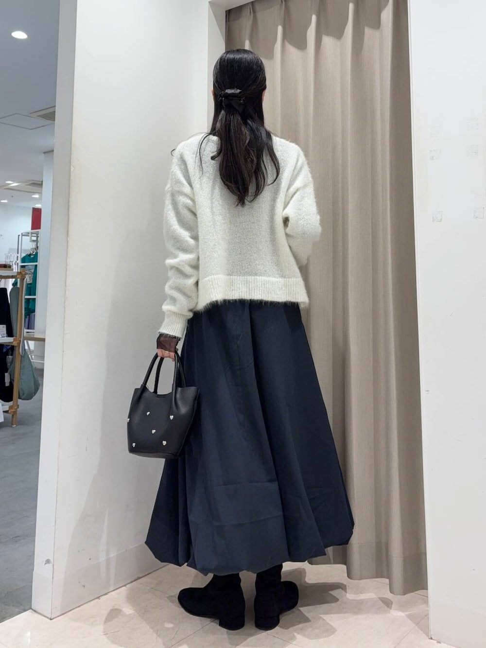ネイビーのカラーは黒よりも柔らかさを出しつつコーデを締めてくれますよ♪