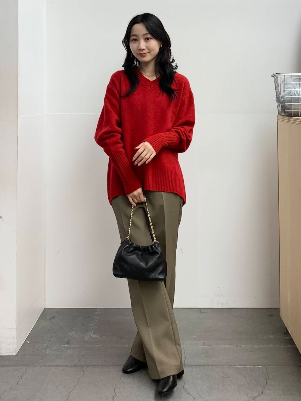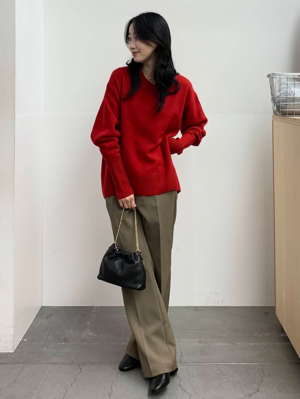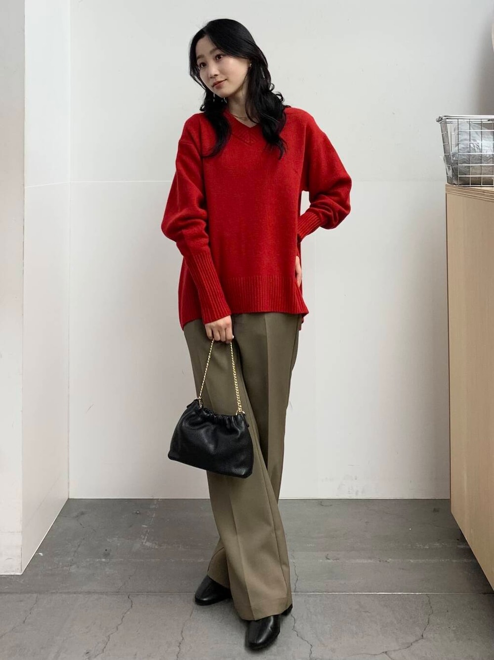 トップスのニットは袖の部分のみが少し細めになっていて、メリハリあるニットです!