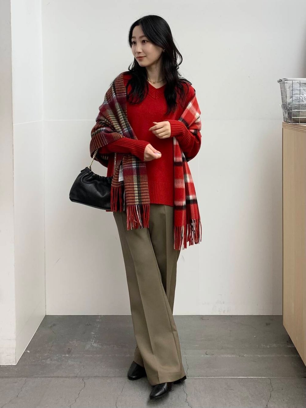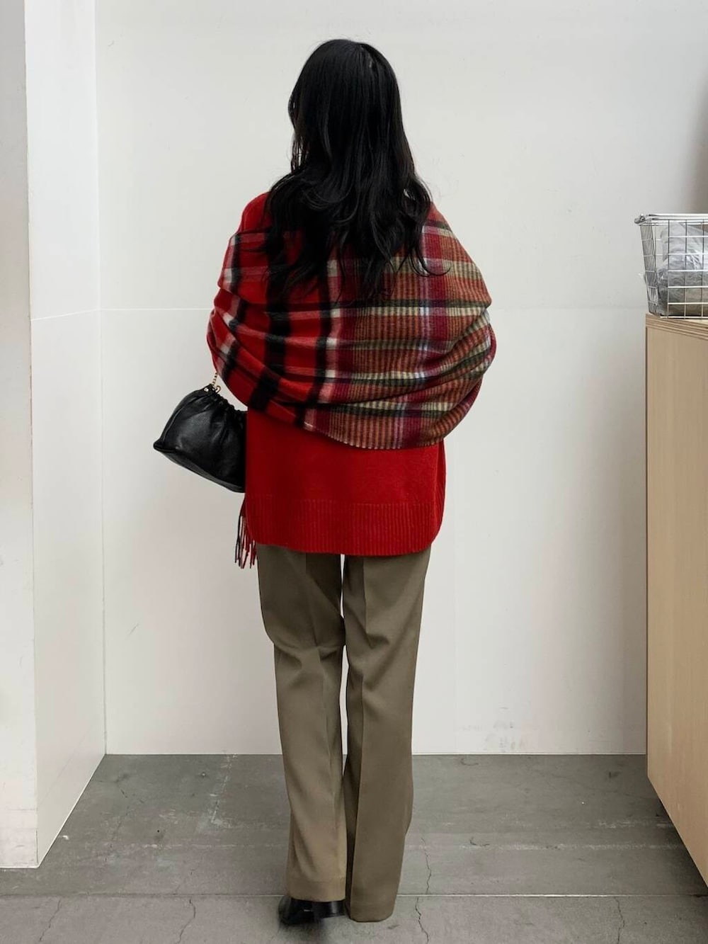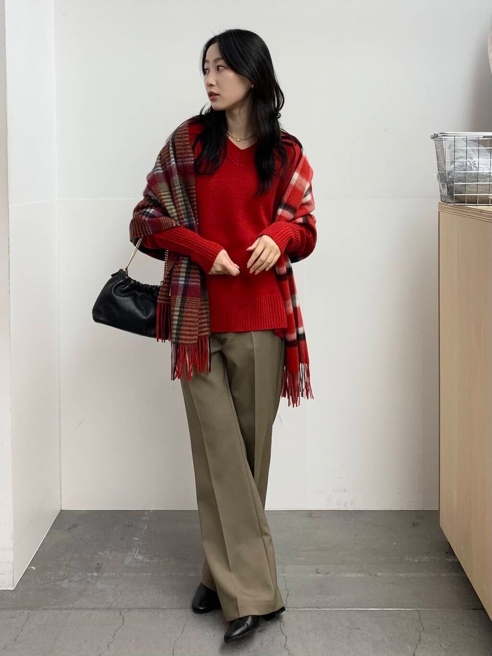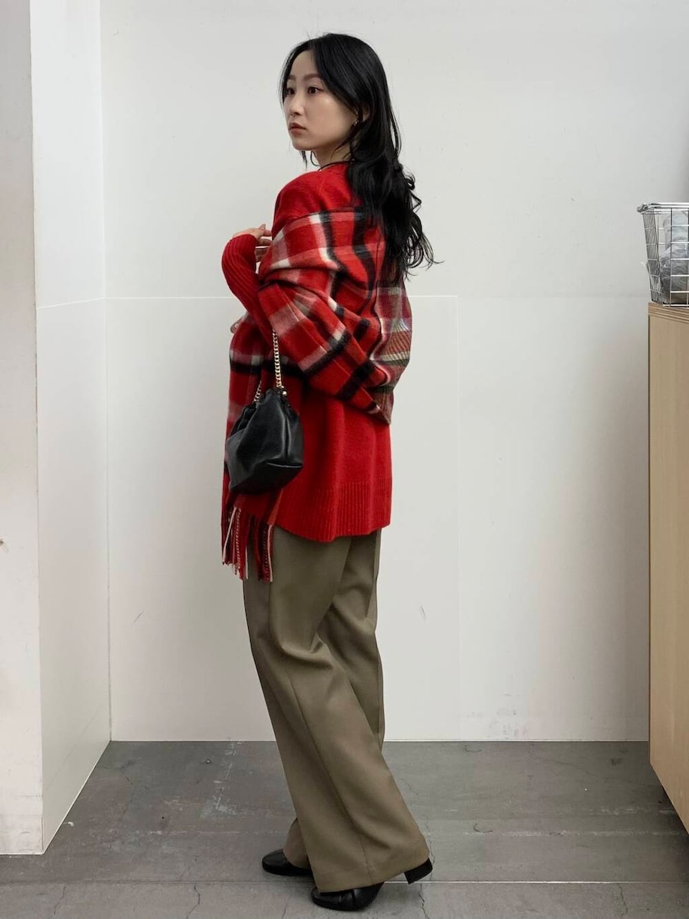 トップスのニットは袖の部分のみが少し細めになっていて、メリハリあるニットです!
