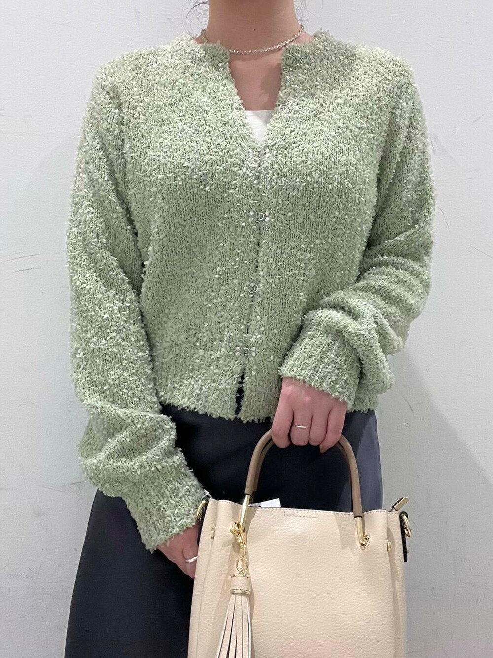 SENSE OF PLACEラメリボンクルーネックカーディガン