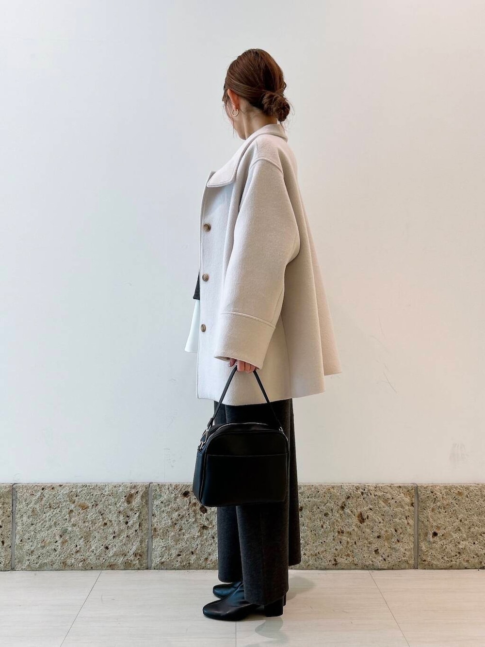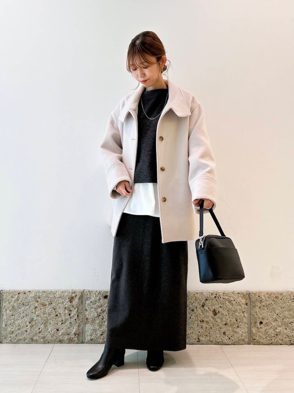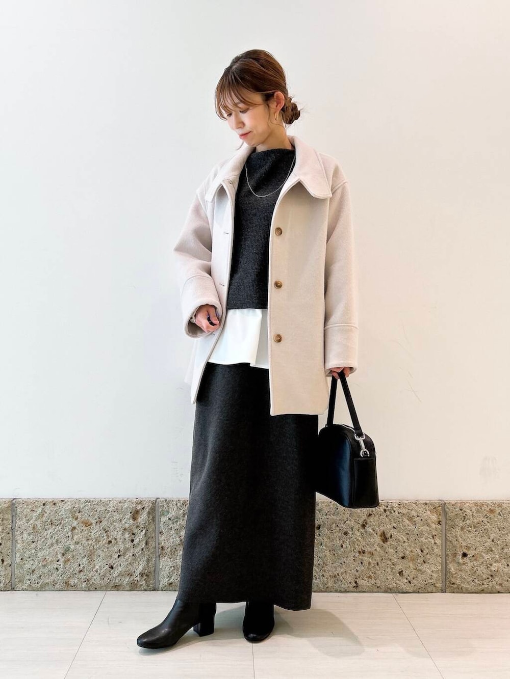 アウターは優しいECRUカラーが