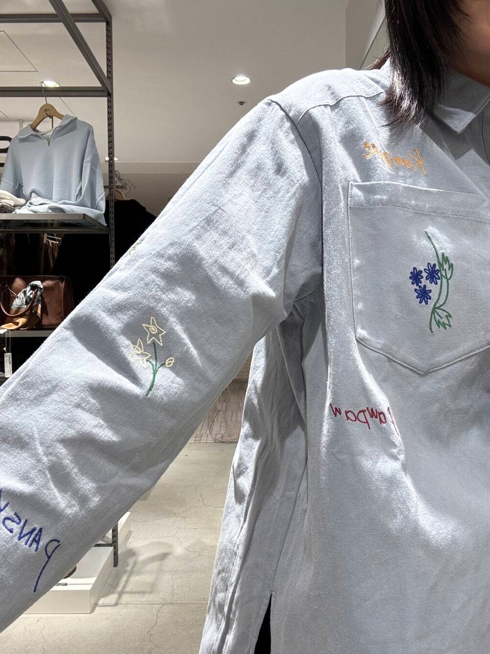 オーバーサイズのシャツにそれぞれ違った刺繍が施されたアイテムです🧵