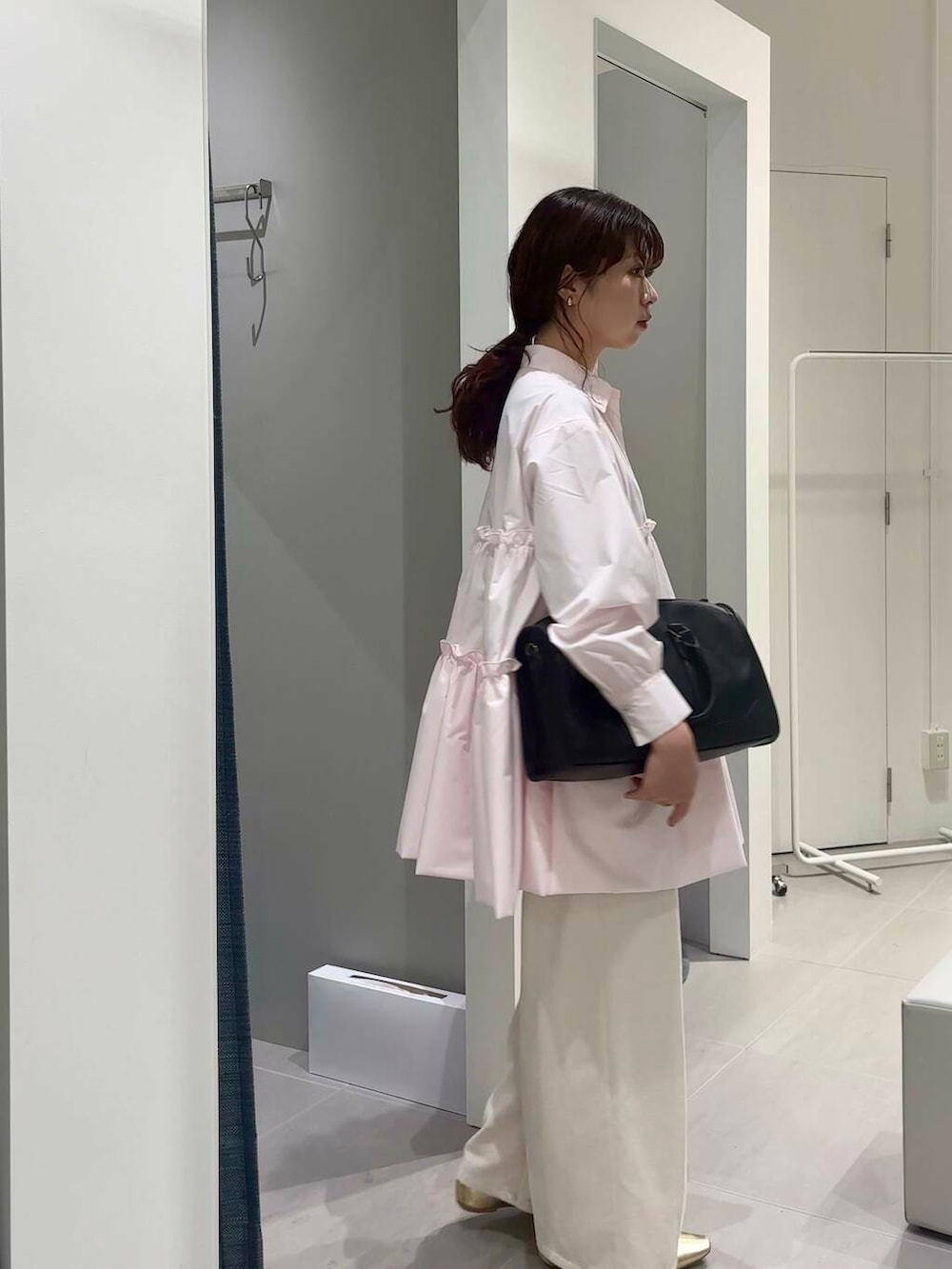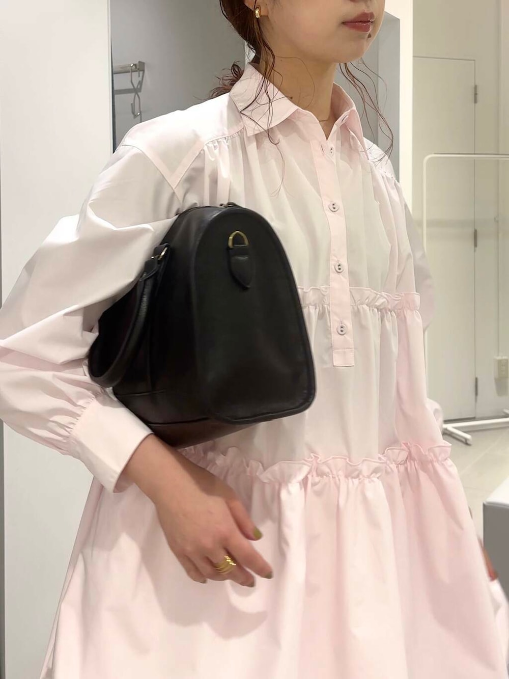 大きめのボストンバッグを黒で締めた大人コーデです🍷