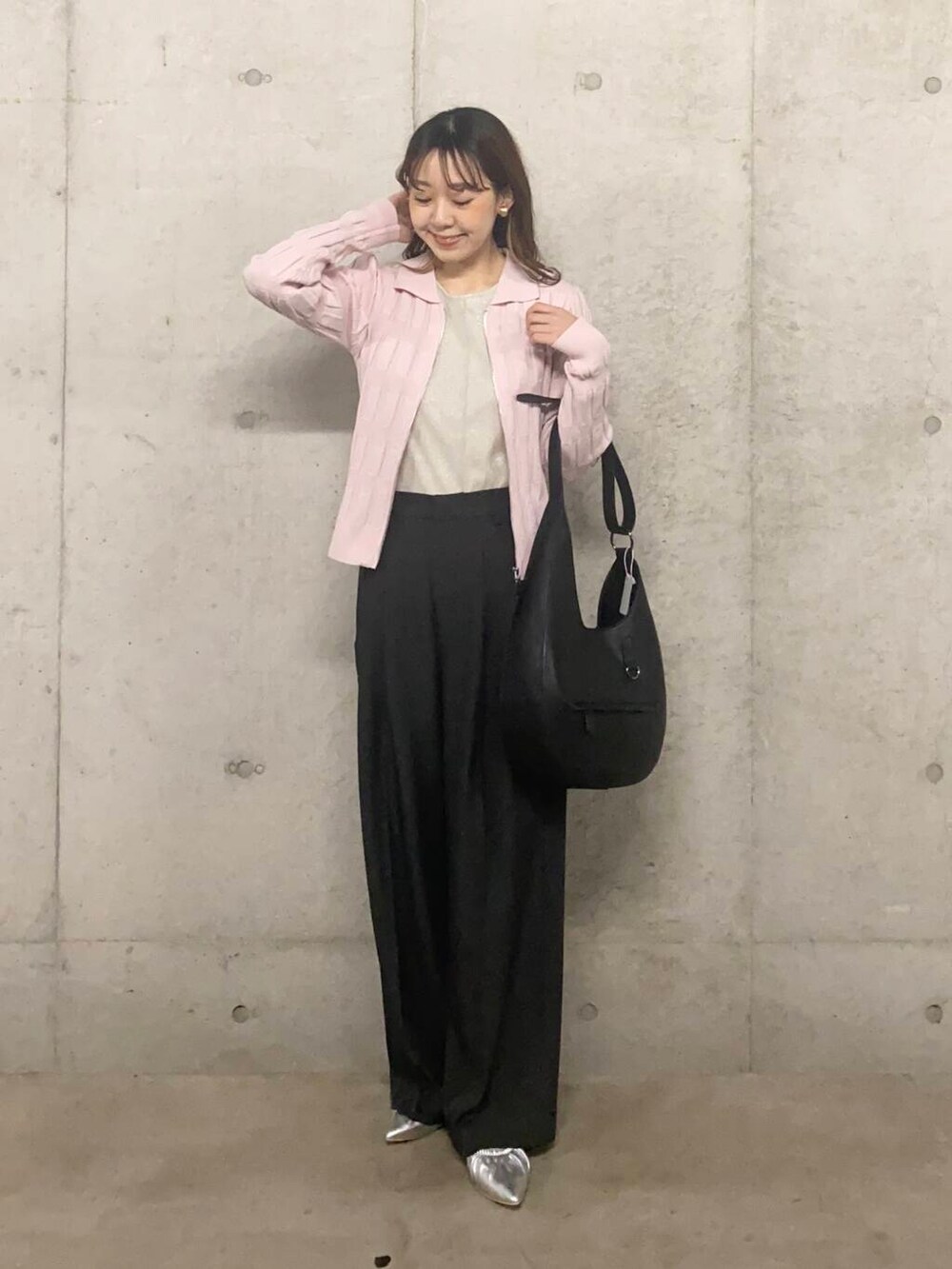 パステルピンクの甘さを抑え目に、ルーズスラックスで大人カジュアルにしてみました😍
