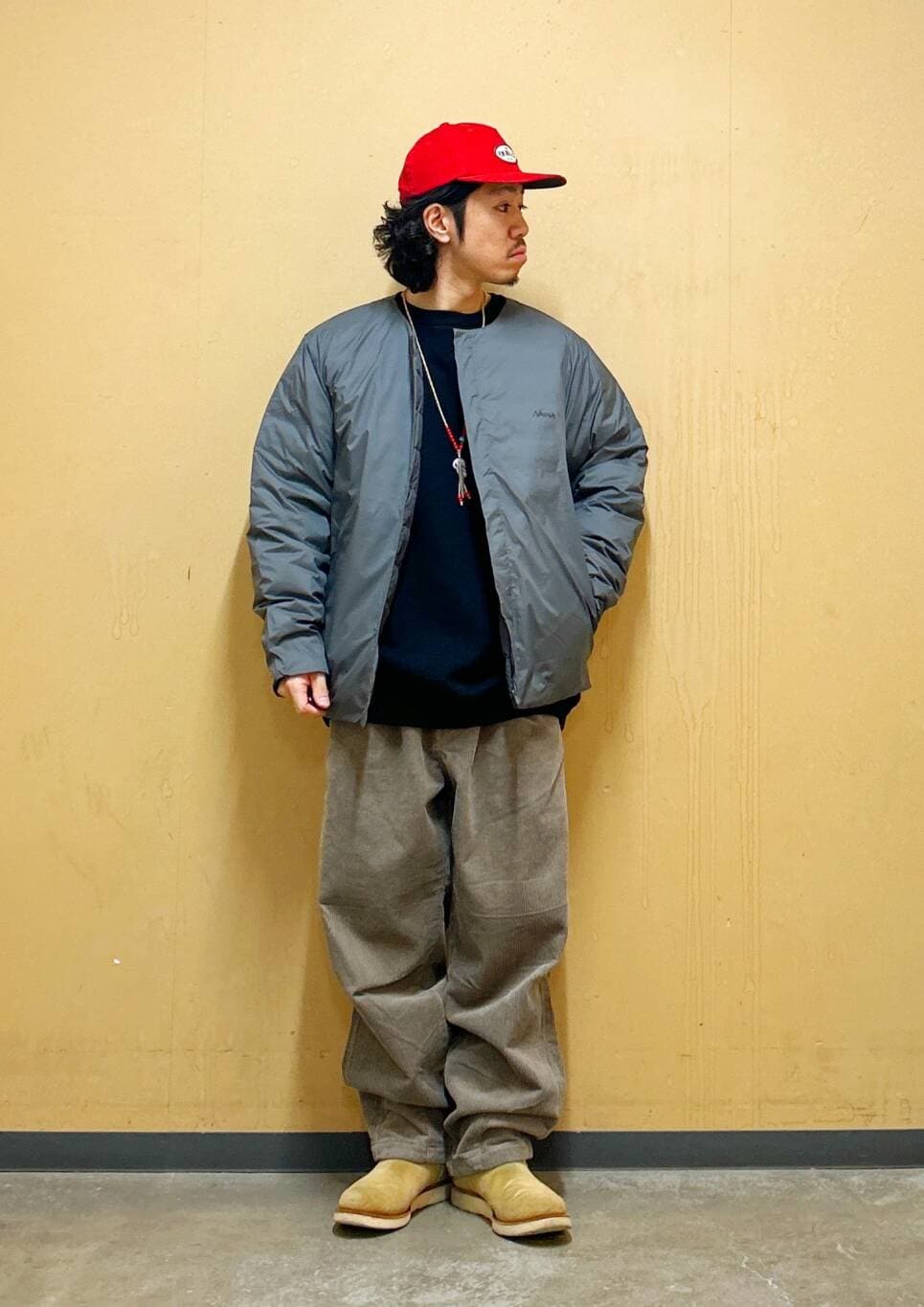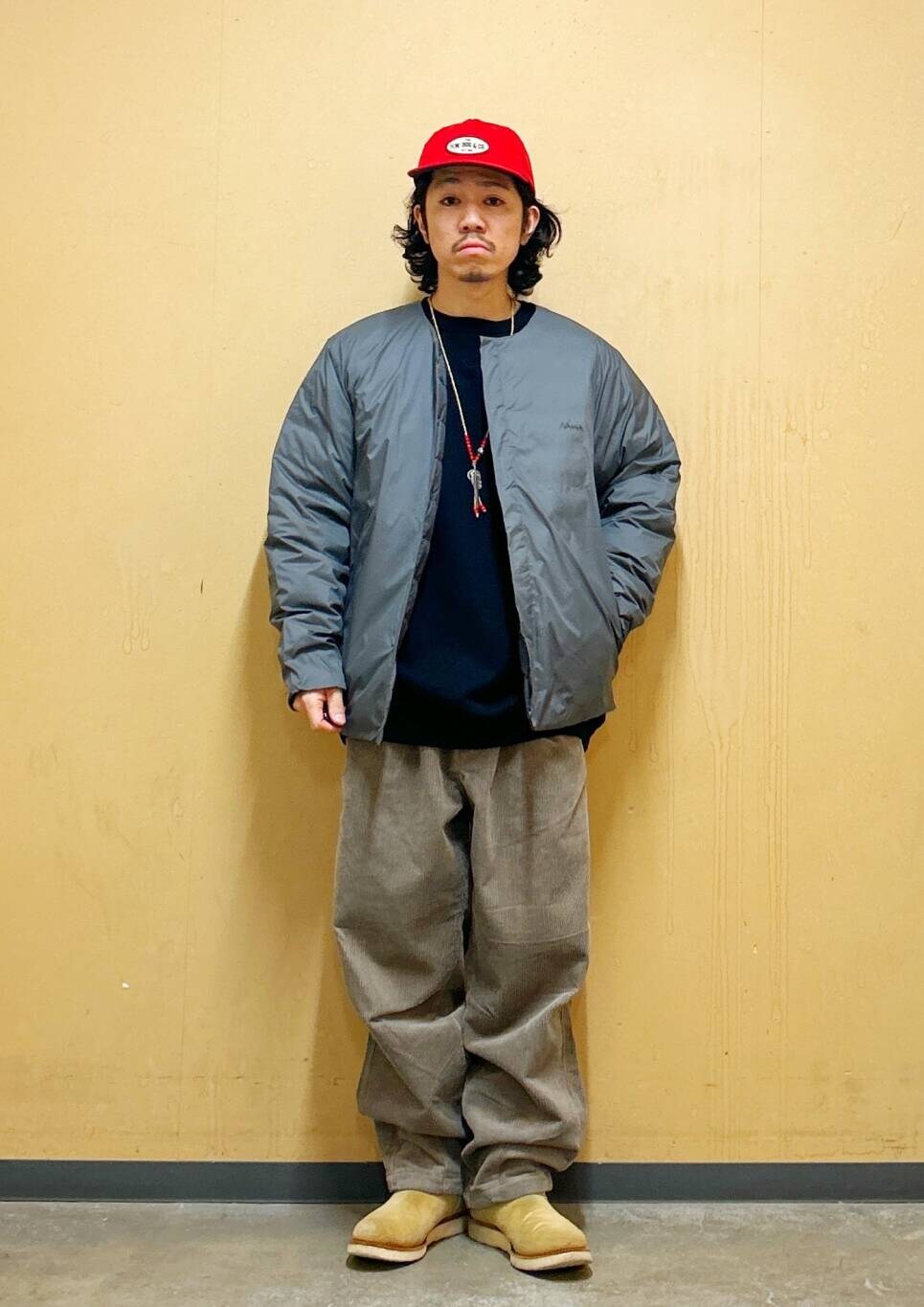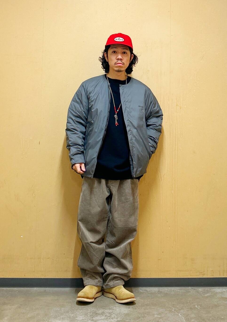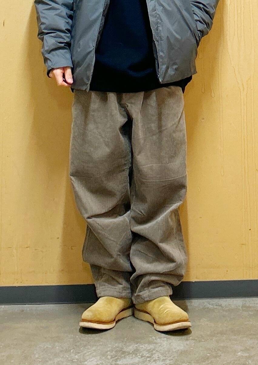 今回はNANGAインナーダウンとコーデュロイワイドパンツを使用したコーディネート。
