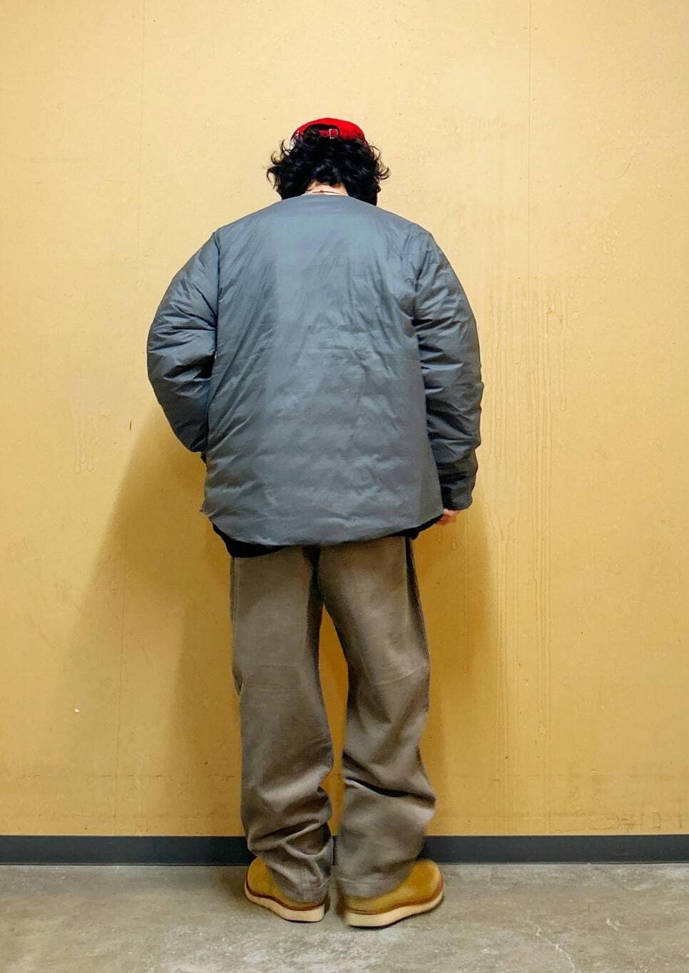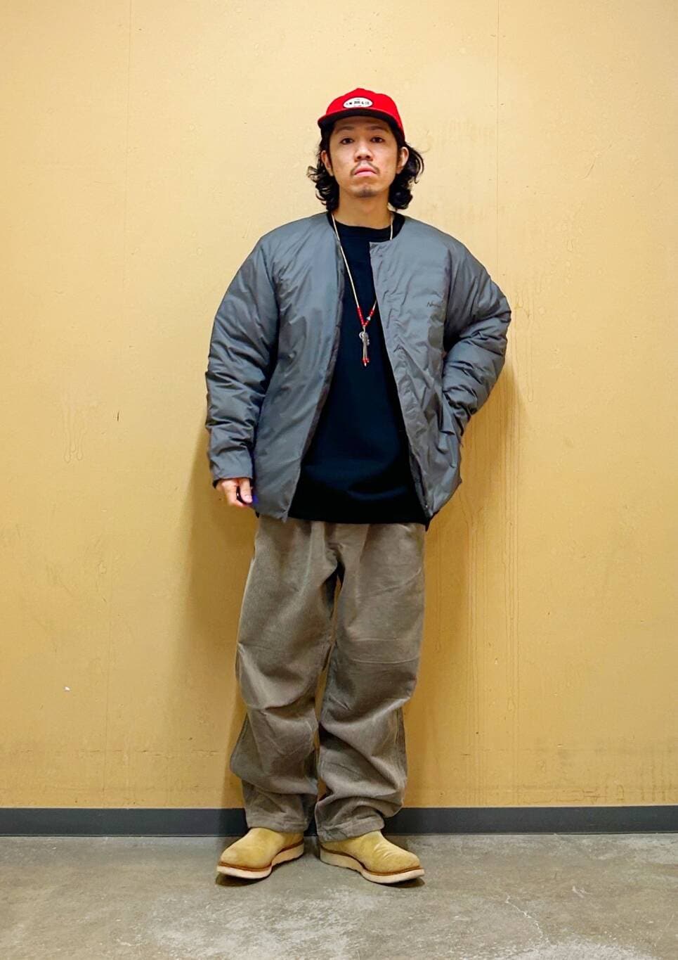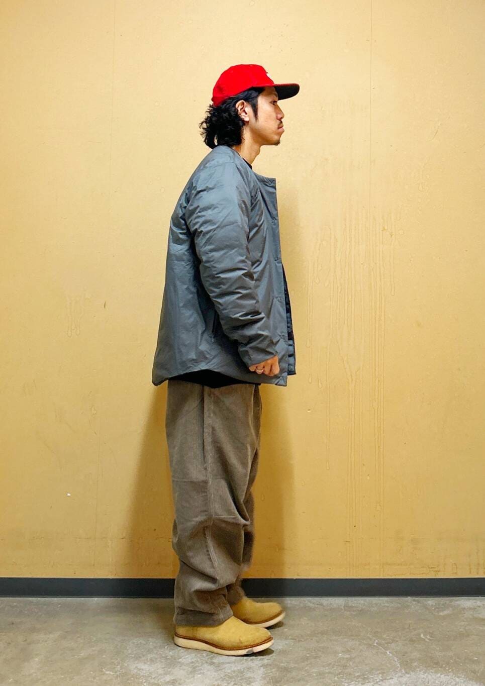 今回はNANGAインナーダウンとコーデュロイワイドパンツを使用したコーディネート。