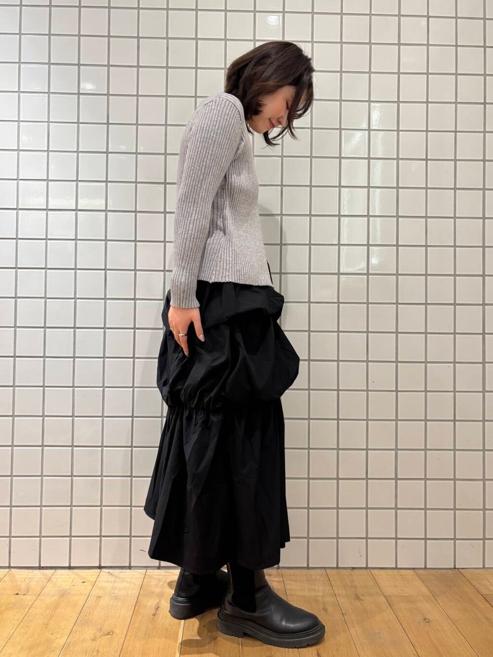 バルーンのデザインが目を引くスカートとアンサンブルレイヤードセーターを合わせて最高に今年っぽく⸜ ෆ ⸝