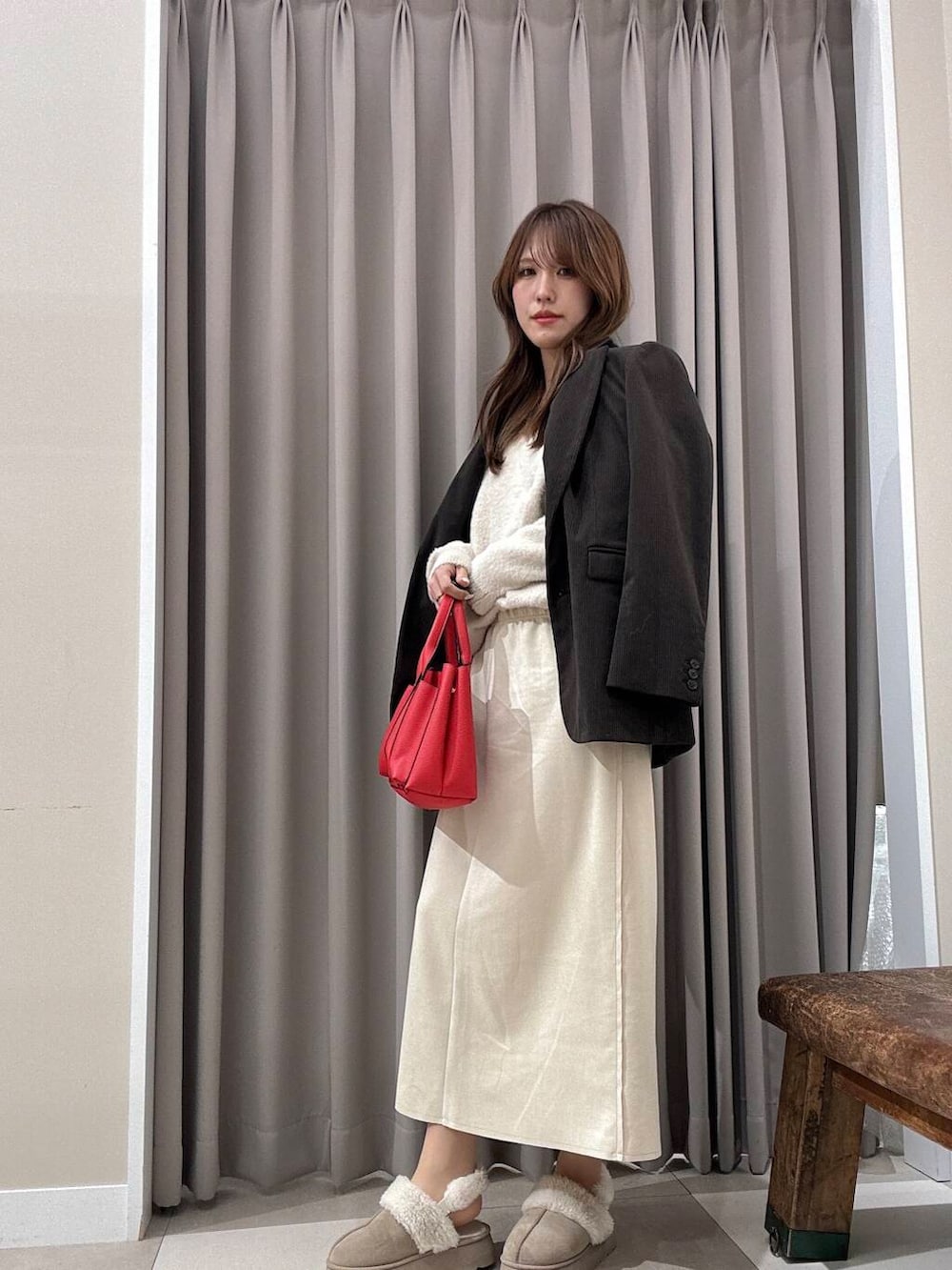 差し色の赤のバッグもポイントです🙇♀️🙇♀️