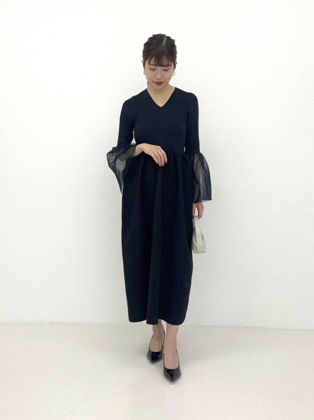 女性らしいフォルムのフレアスリーブワンピースを着用しました♪