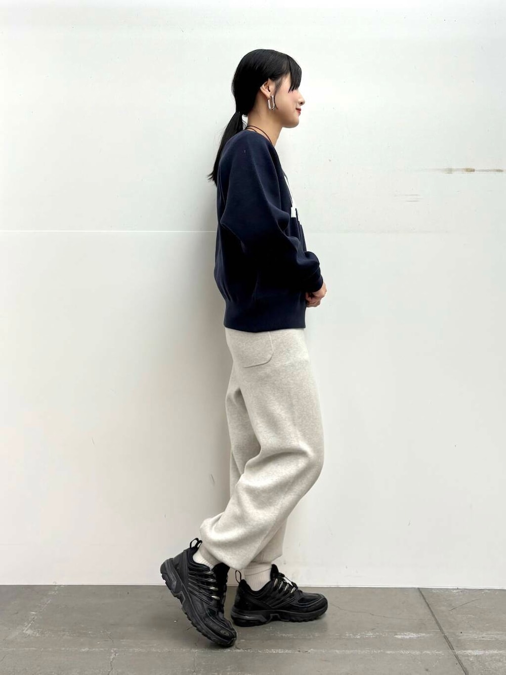 スウェットライクなニットパンツと合わせてカジュアルにスタイリングしました!