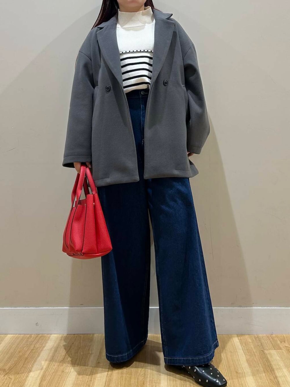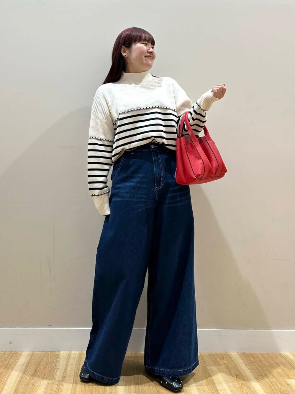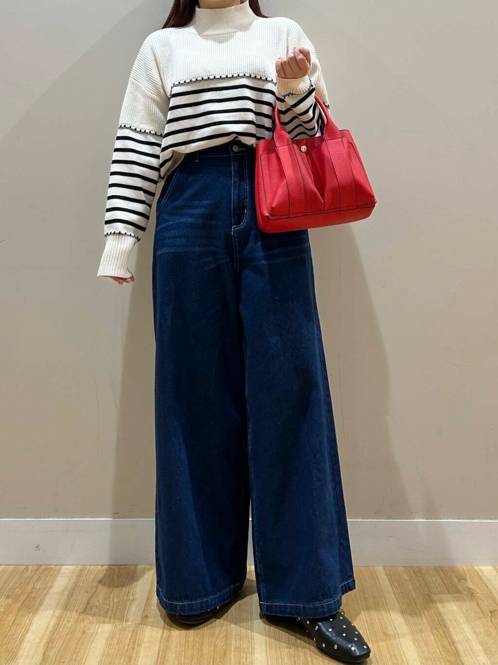 デニムワイドパンツは股上深めなデザインなので脚長効果抜群でした^^