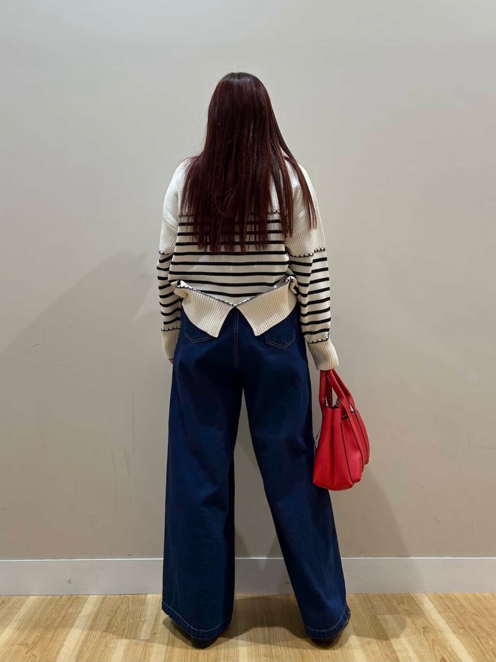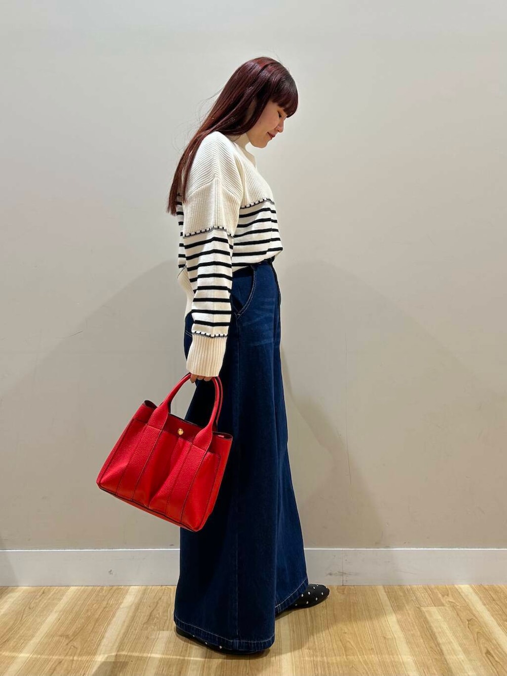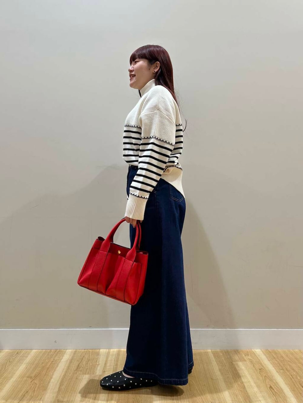 デニムワイドパンツは股上深めなデザインなので脚長効果抜群でした^^