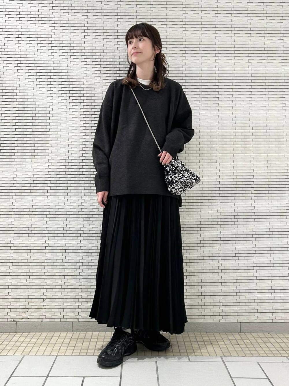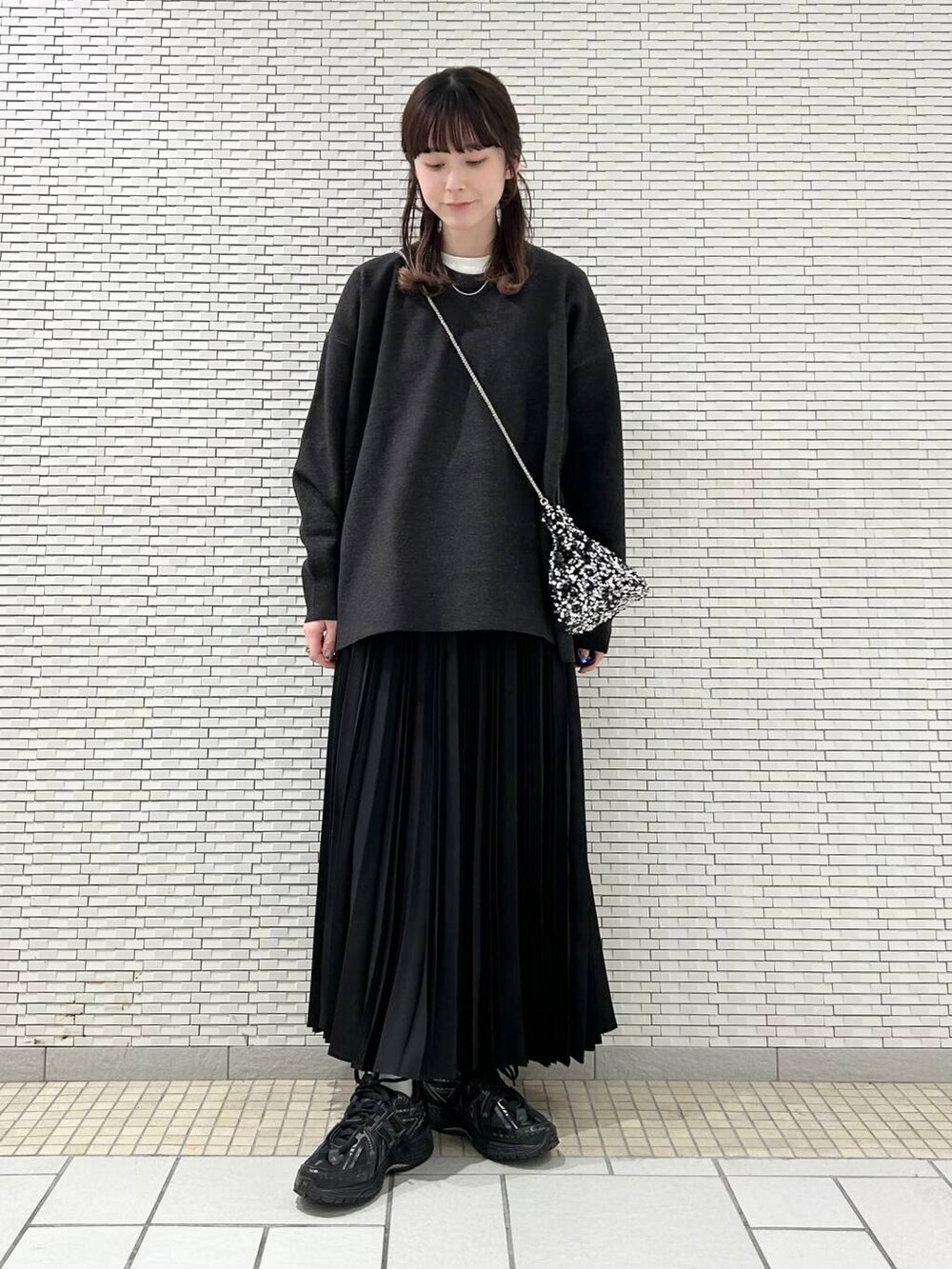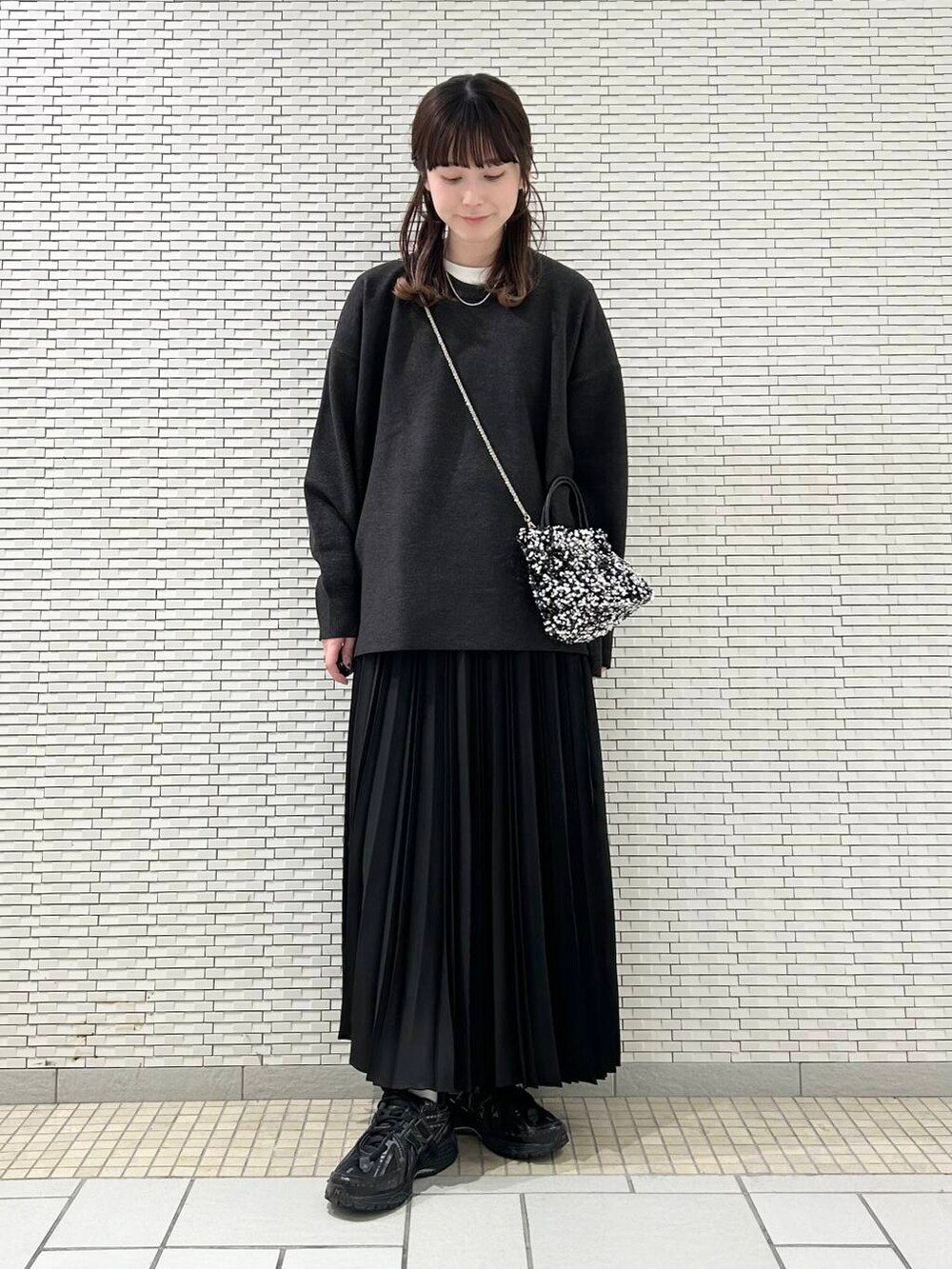 ニットはチュニック丈ですが広がりすぎずラインを綺麗に見せてくれるので、スカート合わせもオススメです。