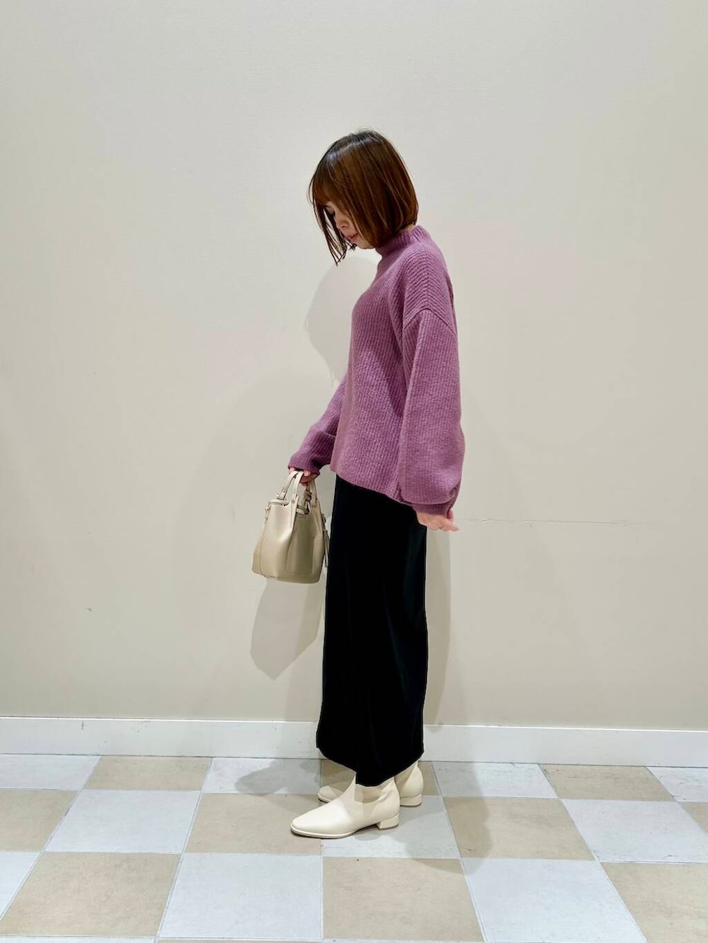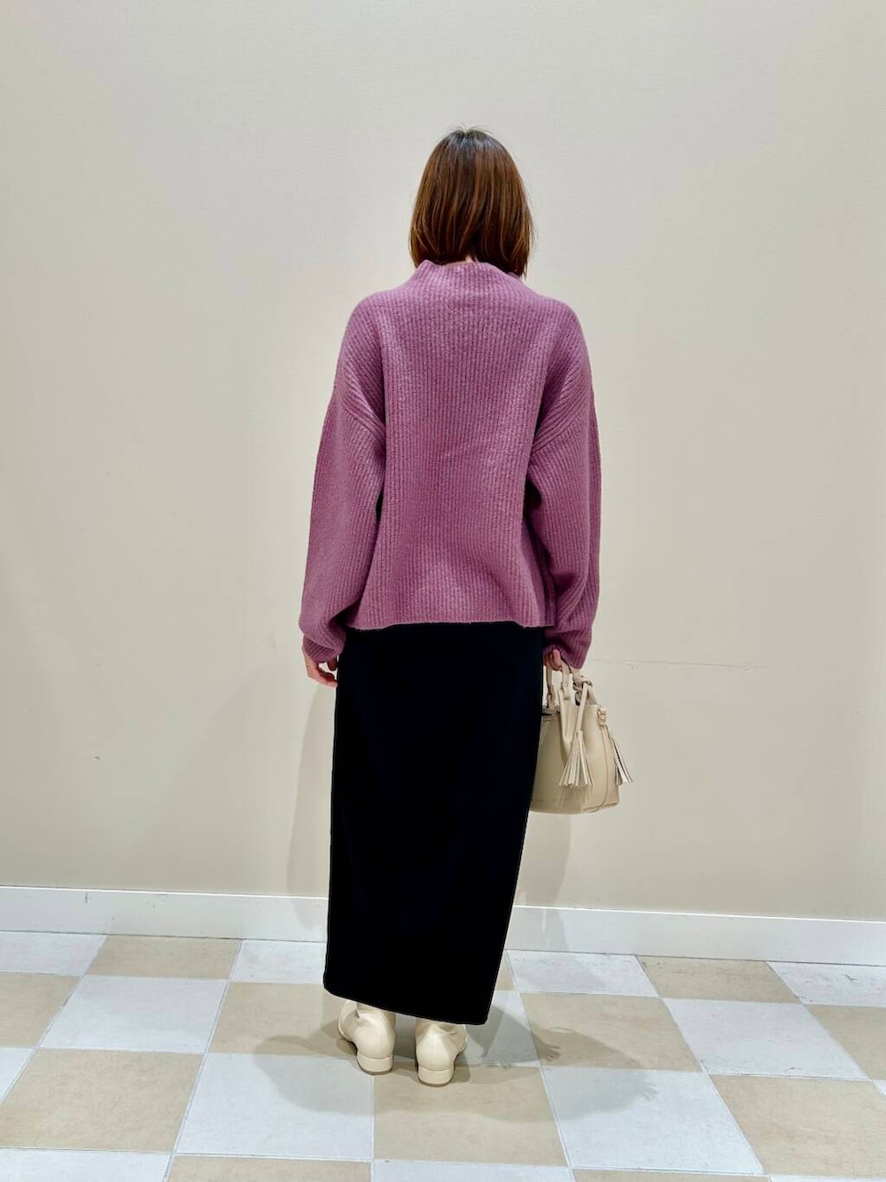 ボトルネックなので首元暖かく、さらにすっきりと見せてくれます。