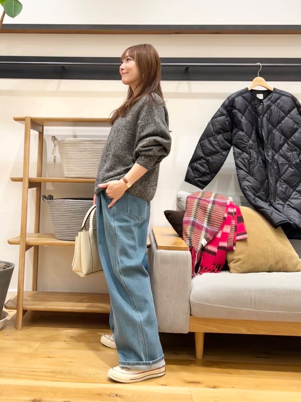 裏起毛はそこまでモコモコではないですがちゃんとあったかく、こなれ感あるシルエットもかなり良しです◎