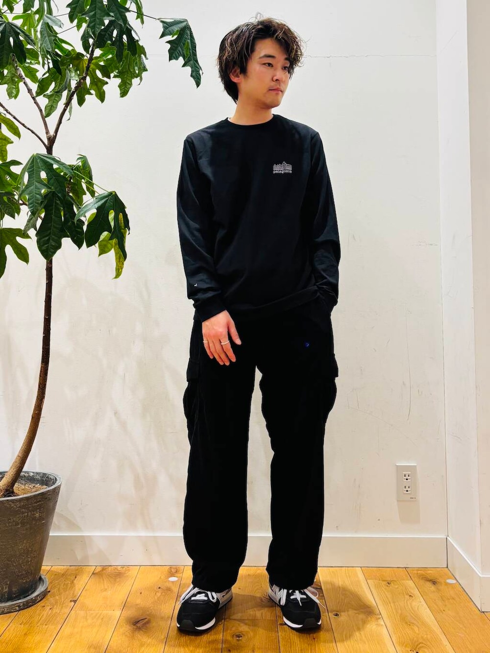 今回は、ブラックのアイテムでコーディネートを組んでみました。