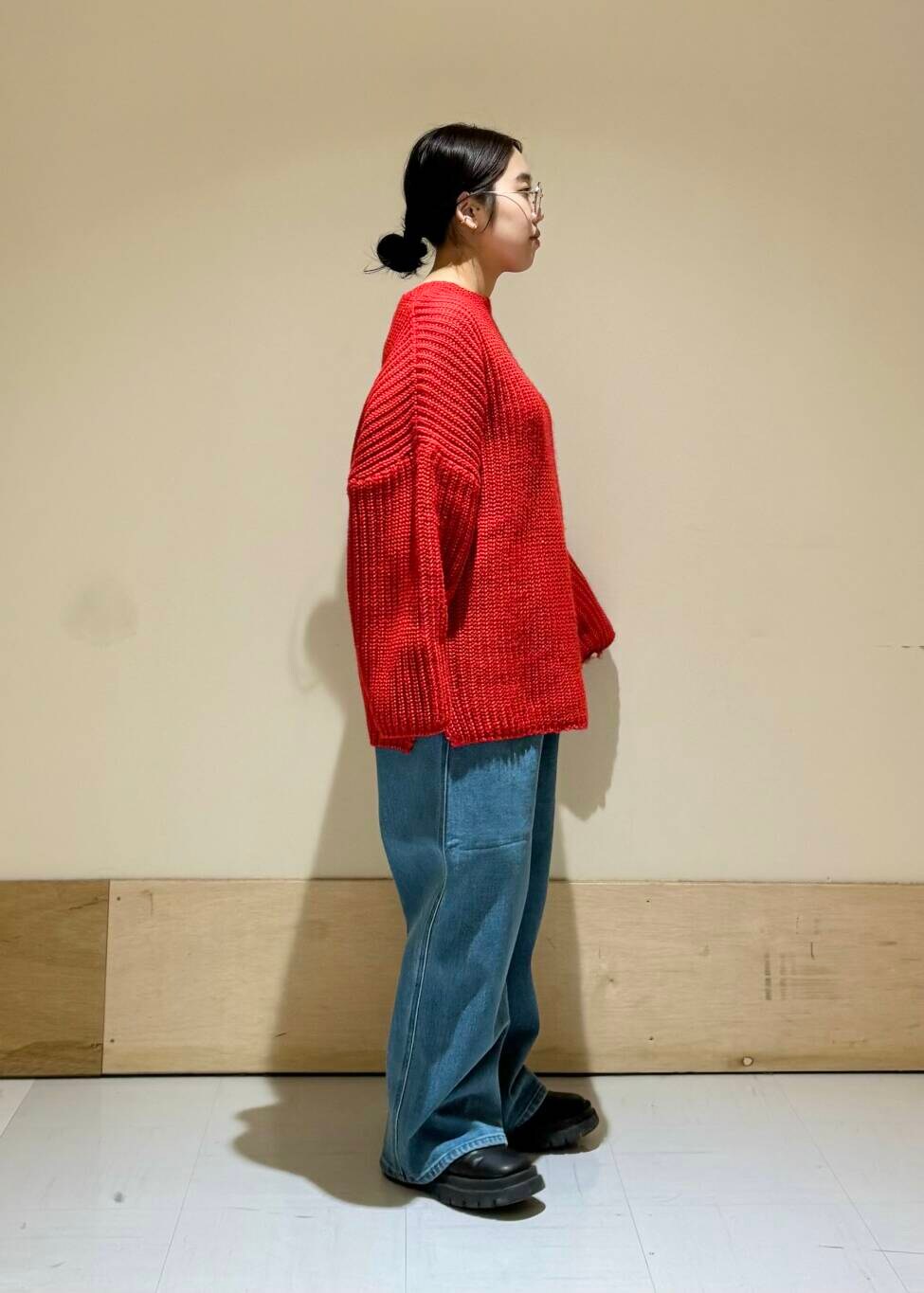 赤が差し色でデニムともよく映えます◎