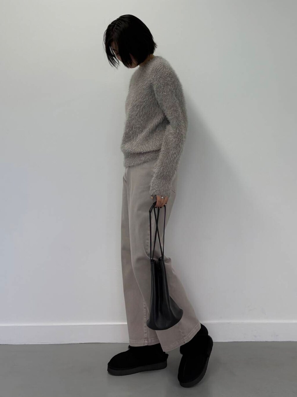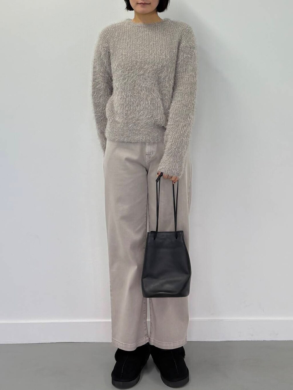 まだまだこれから寒いのですが、シャギーニットはふわふわで温かいながらも丈も長すぎずキレイ目にもカジュアルにも着用できるのでオススメのコーデです!