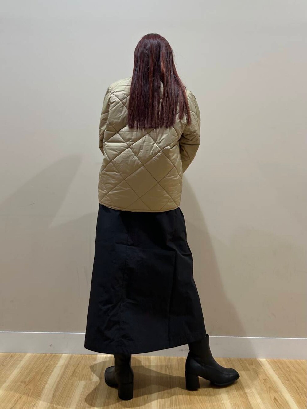ノーカラーの中綿アウターは袖元がリブになってて袖からの冷気の侵入を防げます😢😢