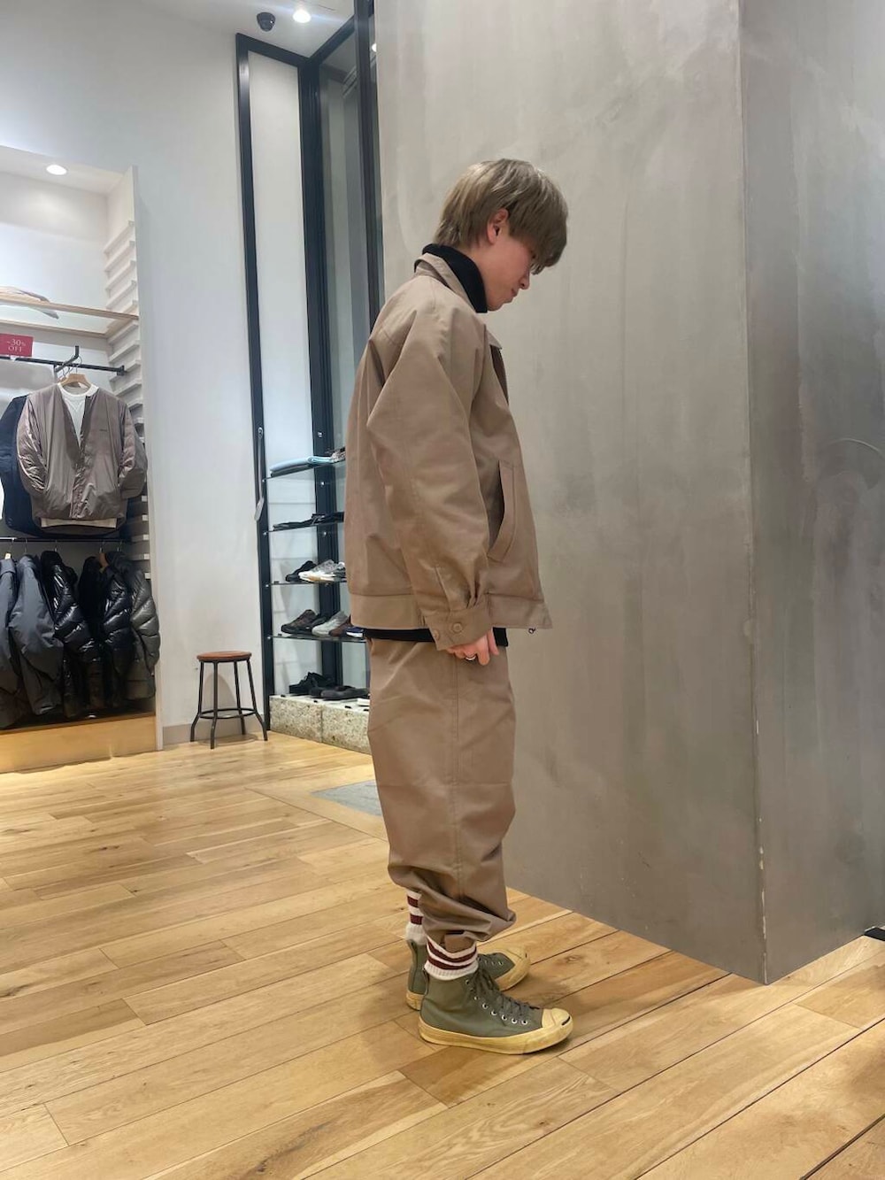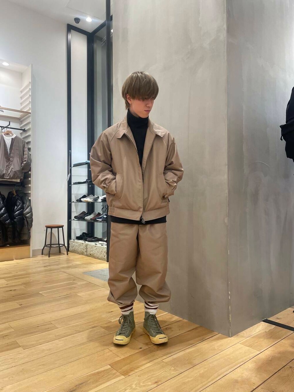 靴下にパンツをインして足元にアクセントを加えてみました。