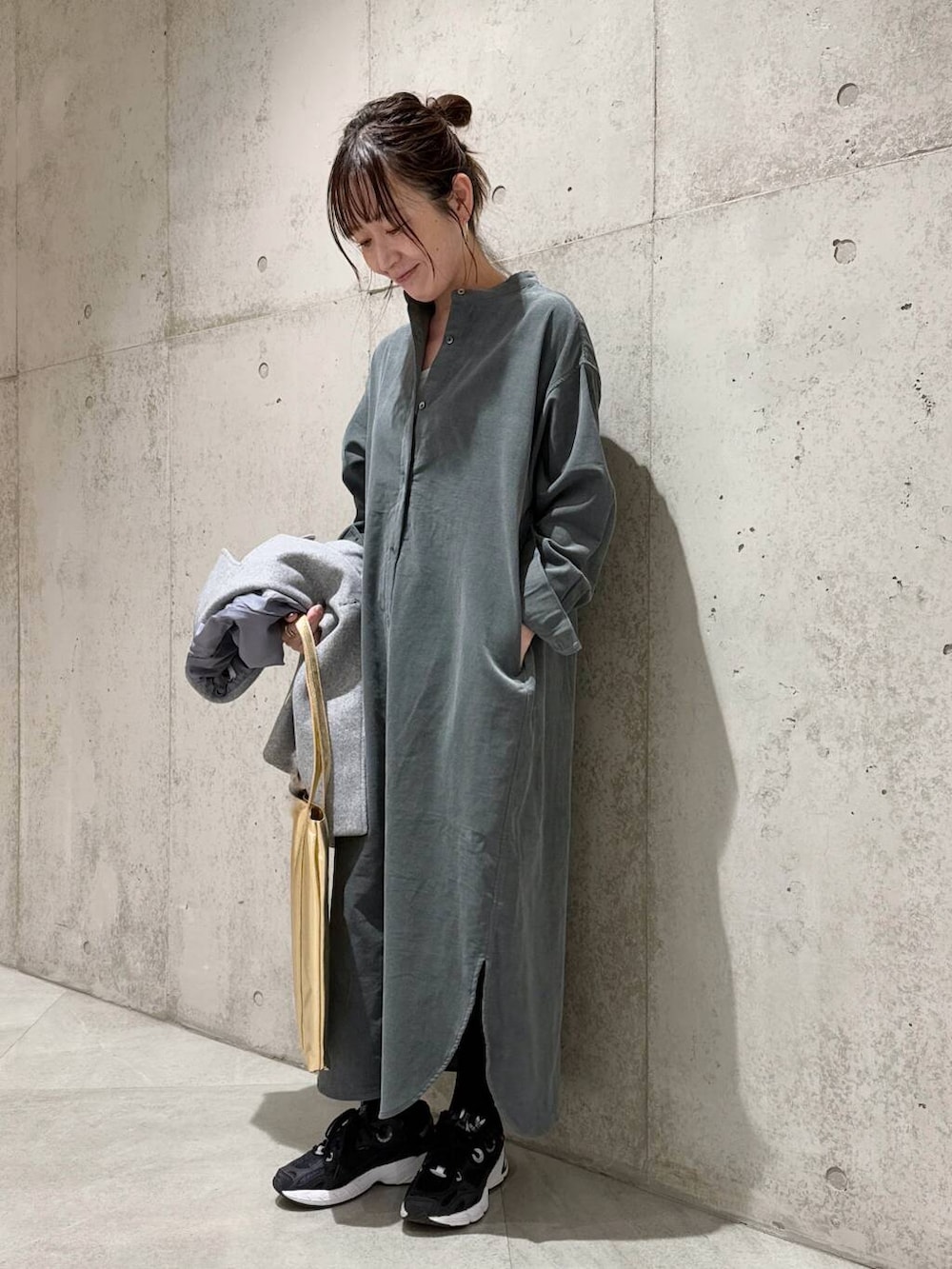 今回は、コーデュロイのシャツワンピースを合わせた、大人カジュアルコーディネートです。