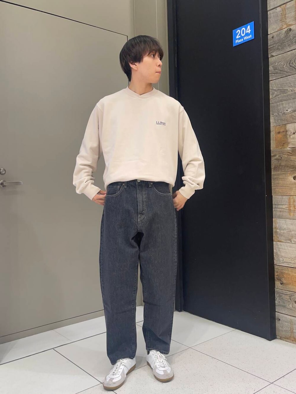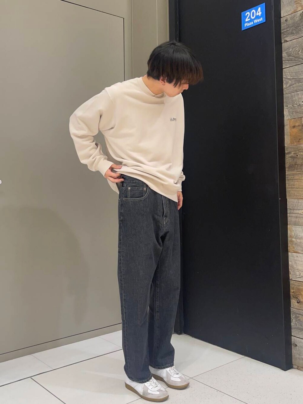 春色のスウェットを使いワイドデニムで合わせるとすごいシルエットが綺麗にまとまりました
