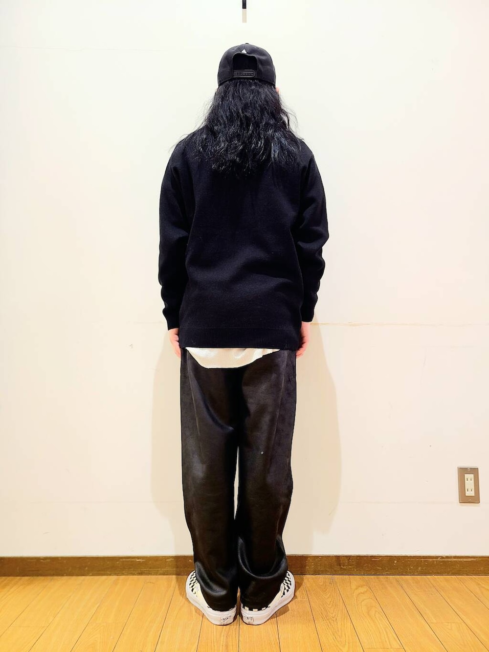 サラッと薄手な生地感ですが、冬にはインナーに最適なディテール。