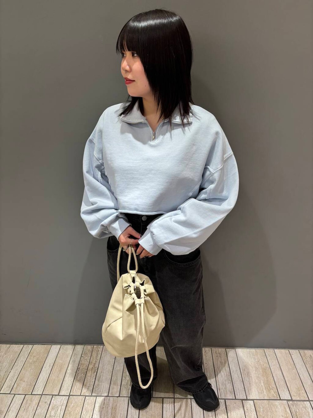 今回は、春らしいベビーブルーの新作アイテムを使ったカジュアルコーデを組んでみました!