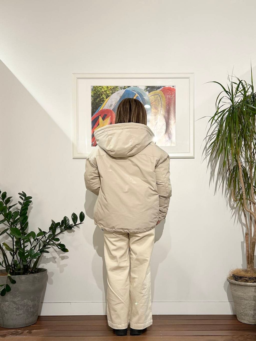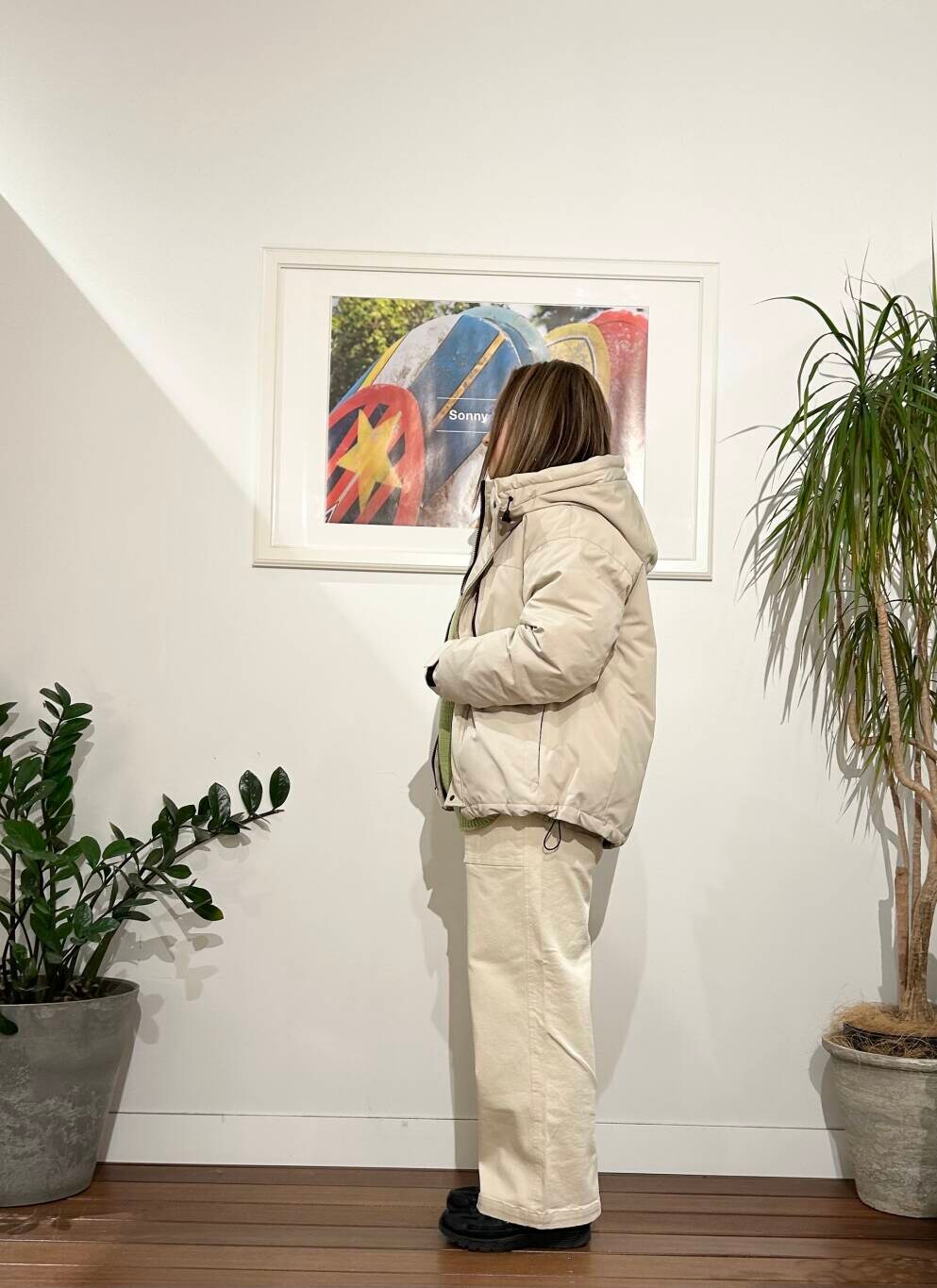 カラーニットを差し色に、大人気のフーディーダウンとボトムのホワイトコーデにしてみました!